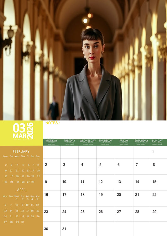 Audrey Hepburn Calendar 2026 – A Year of Grace, Glamour & Hollywood Iconography
