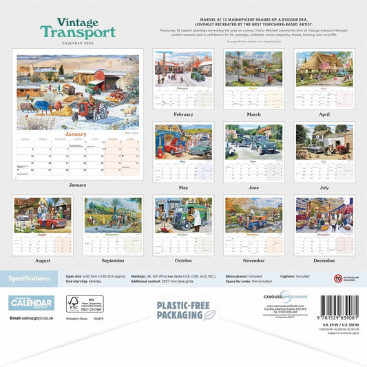 Vintage Transport Square Calendar 2026 – Classic Travel Through Art