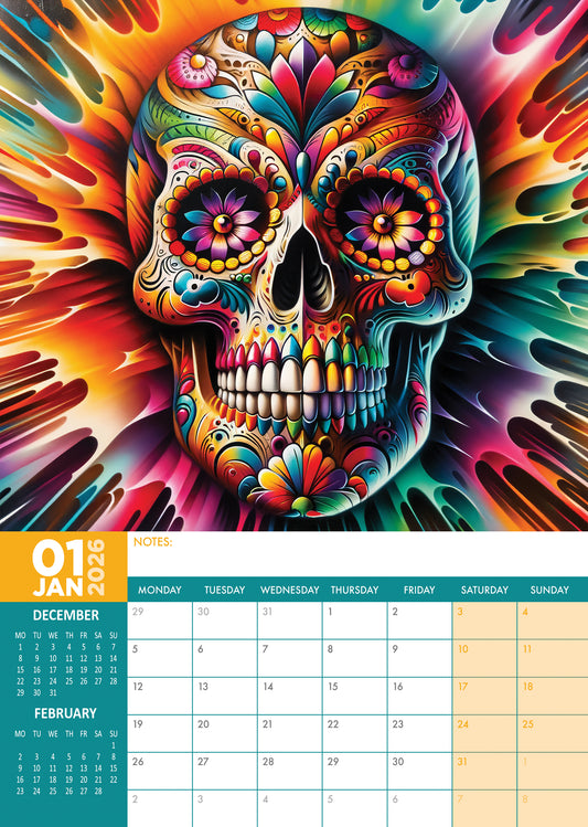 Sugar Skulls Calendar 2026 – A Colorful Celebration of Life, Art, and Tradition