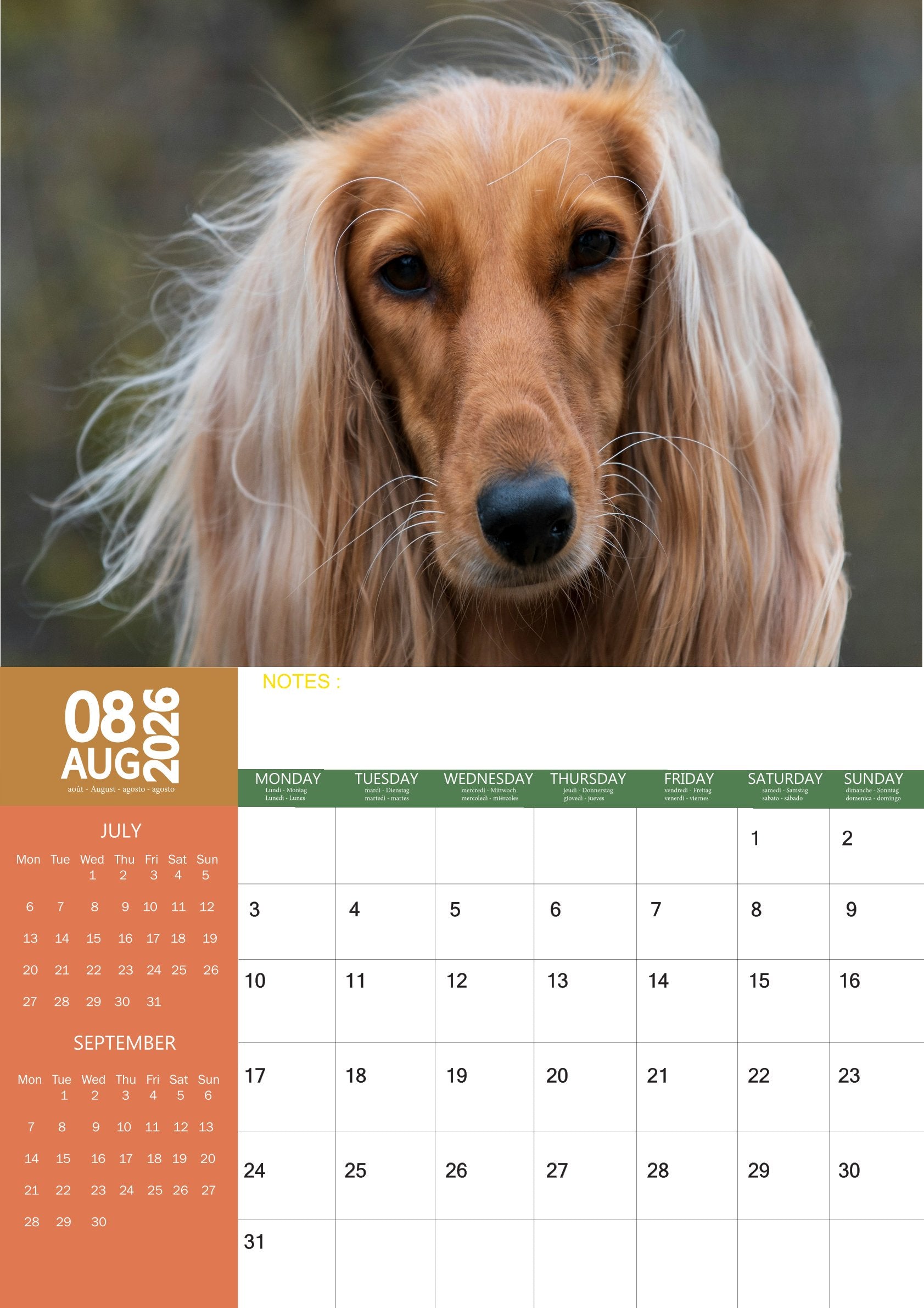Afghan Hound Dog Calendar 2026 – M-PRA Range