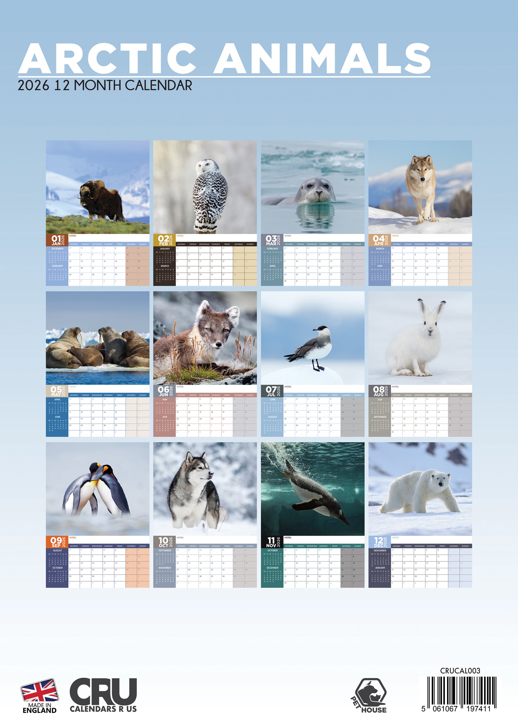 Step into the majestic world of the Arctic with the Arctic Animals Calendar 2026. This breathtaking wall calendar features 12 high-quality, full-colour images of iconic Arctic wildlife, including polar bears, arctic foxes, snowy owls, seals, walruses, and more. Each month showcases a unique scene from the frozen tundra, offering a year-round visual escape into one of the most extraordinary ecosystems on Earth.