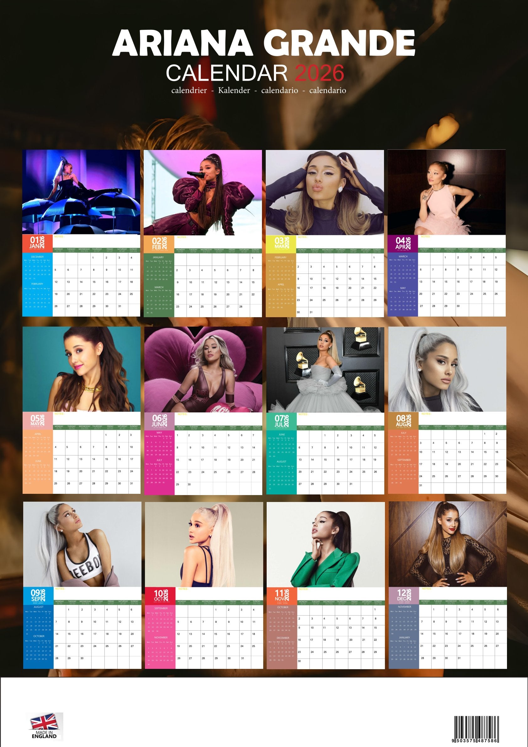 The Ariana Grande Calendar 2026 isn’t just for keeping track of the days—it’s a year-long celebration of one of pop music’s most iconic stars. With glamorous photography and a functional design, this calendar is the perfect way to keep Ariana’s energy and style in your life every month.