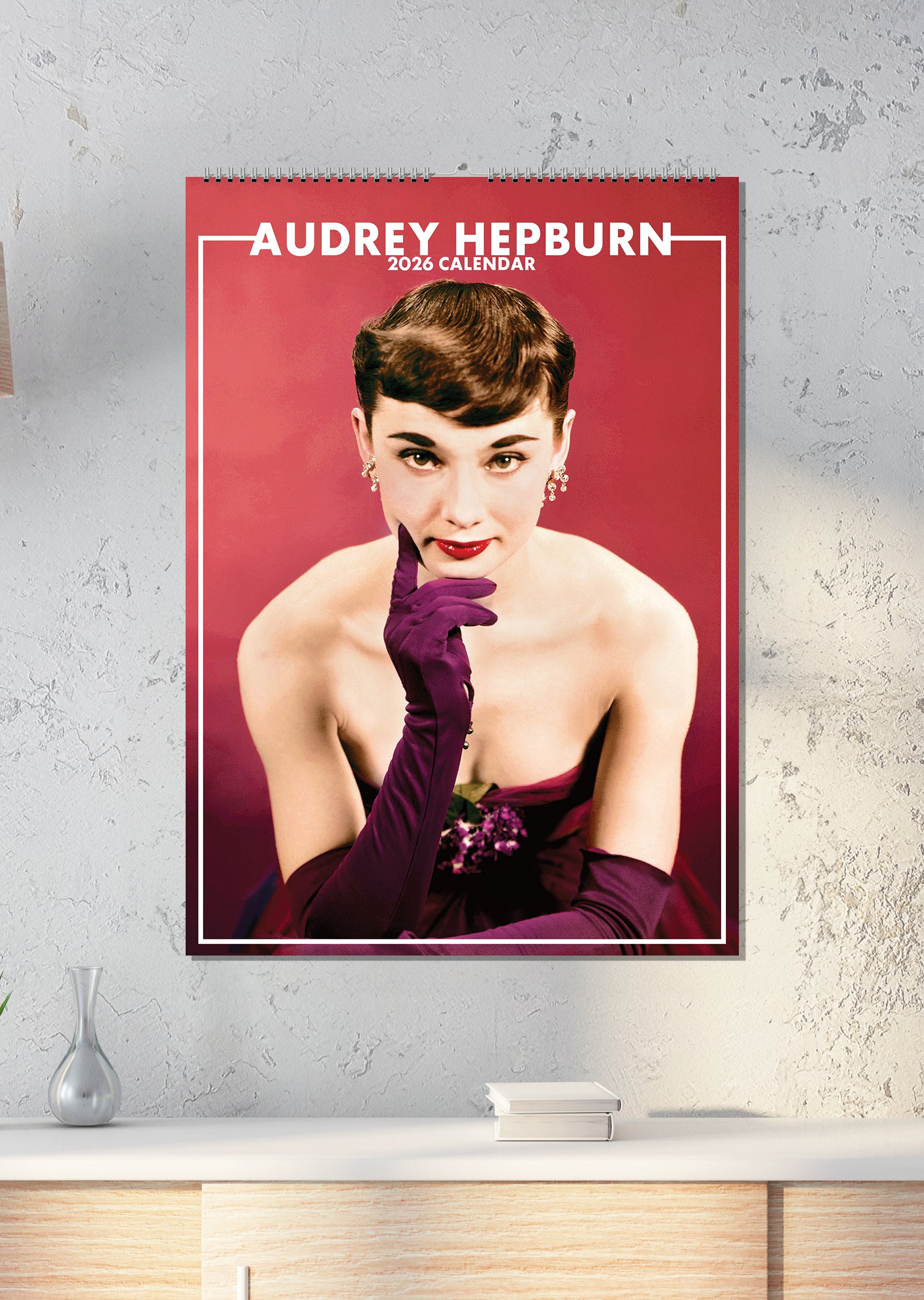 Celebrate the elegance of a true Hollywood legend with the Audrey Hepburn Calendar 2026. Featuring 12 breathtaking images of Audrey in her most iconic moments—from Breakfast at Tiffany’s to candid vintage portraits—this A3 wall calendar brings timeless style and inspiration to every month of the year. Her poise, charm, and humanitarian spirit shine through in each beautifully curated photograph.
