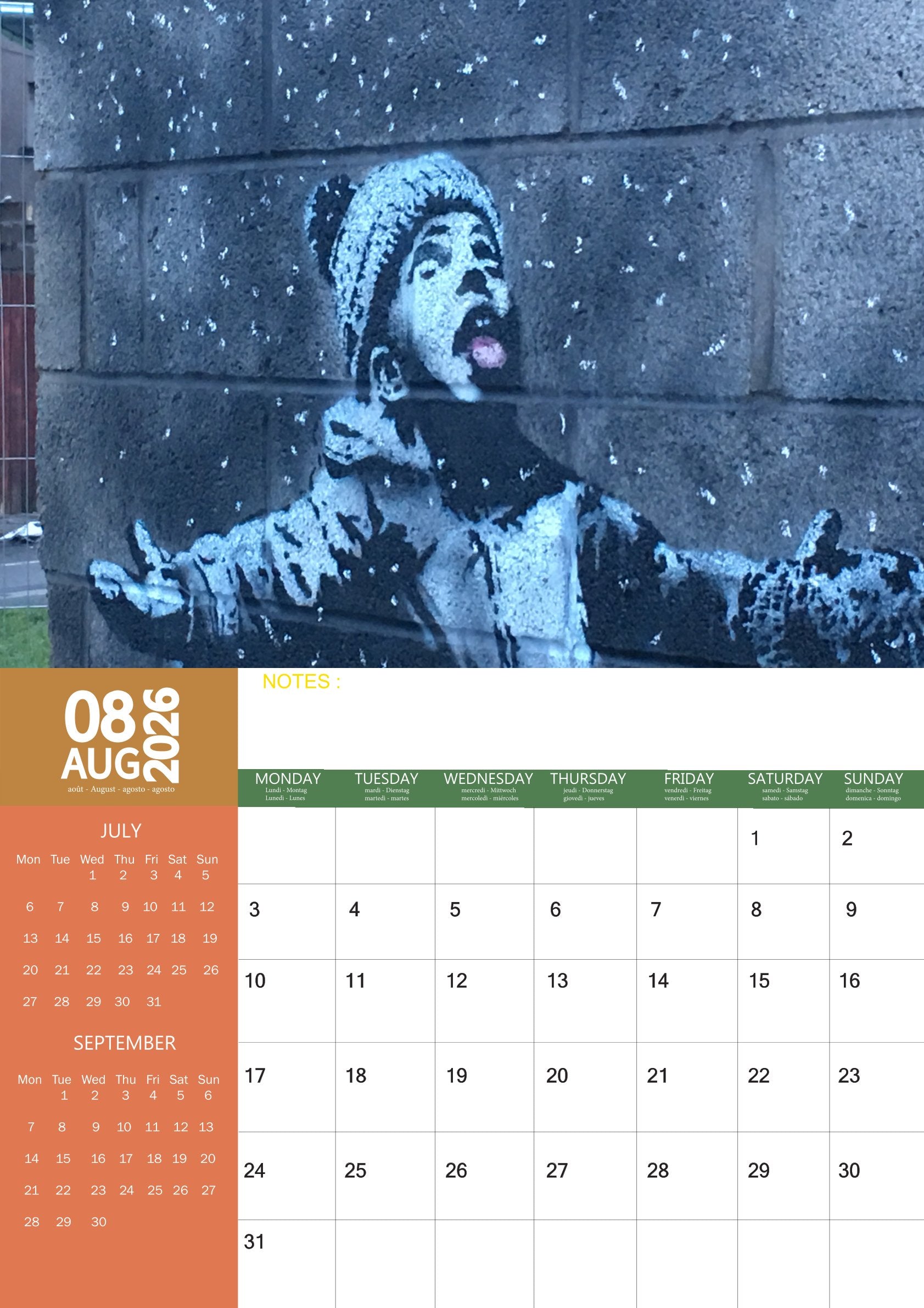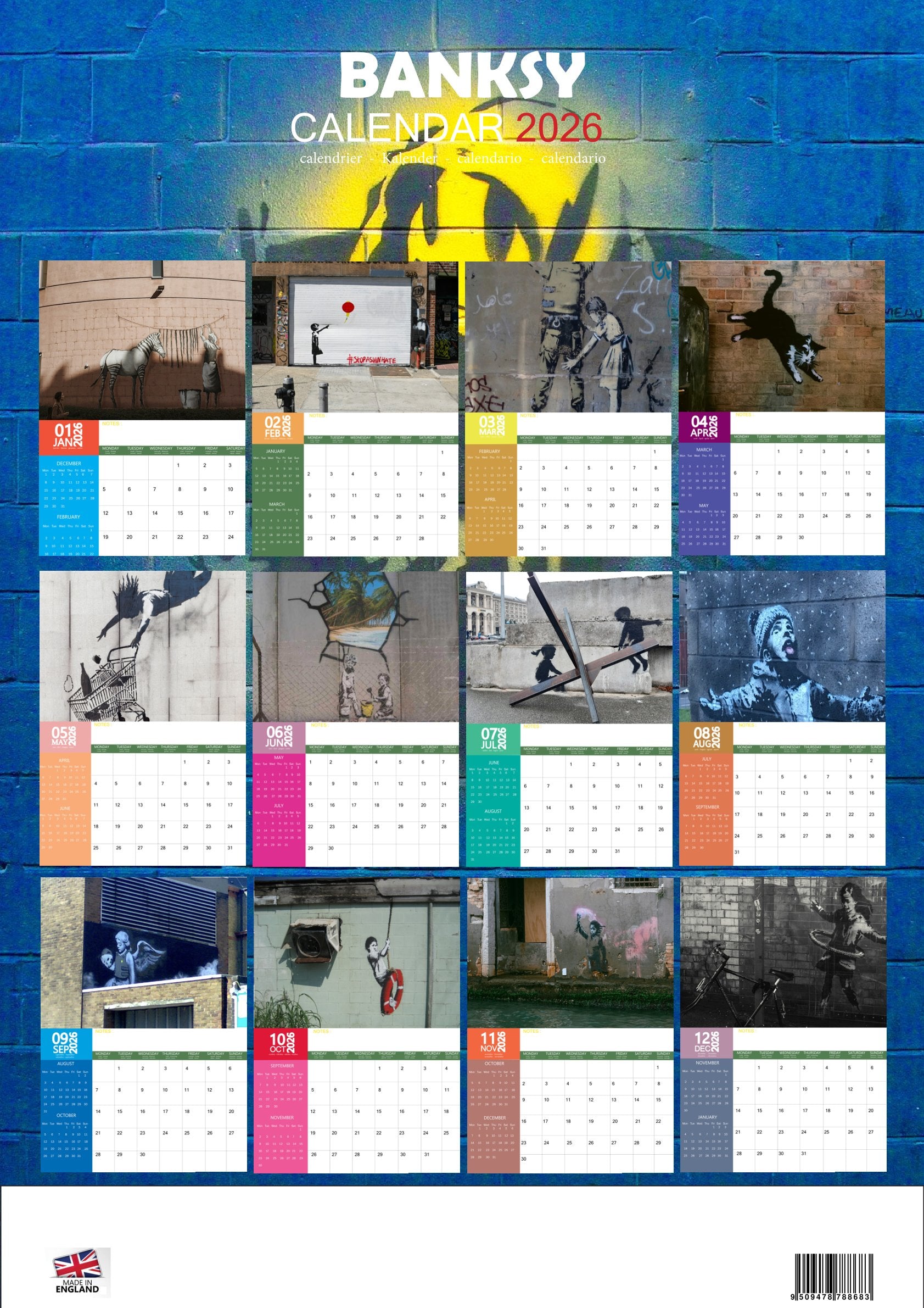 Celebrate the provocative art and rebellious spirit of one of the world’s most famous street artists with the Banksy Graffiti Calendar 2026. Featuring 12 iconic artworks, this calendar captures the wit, humour, and raw social commentary that have made Banksy a global cultural phenomenon.