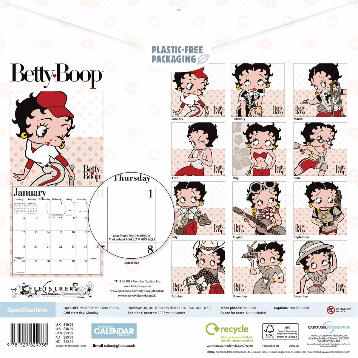 Boop-Oop-a-Doop your way through 2026 with the timeless charm of Betty Boop! At 93 years young, this iconic diva continues to captivate fans around the world with her flair, sass, and unforgettable vintage style. Let Betty add a dash of retro glamour to every month of your year.