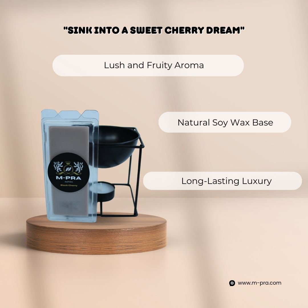 Strong vibrant scent of Black Cherry in our Black Cherry Wax Melt. Enjoy the rich sweet scent of Cherry supported by a sweet vanilla dry down that combine to create a robust succulent aroma.
