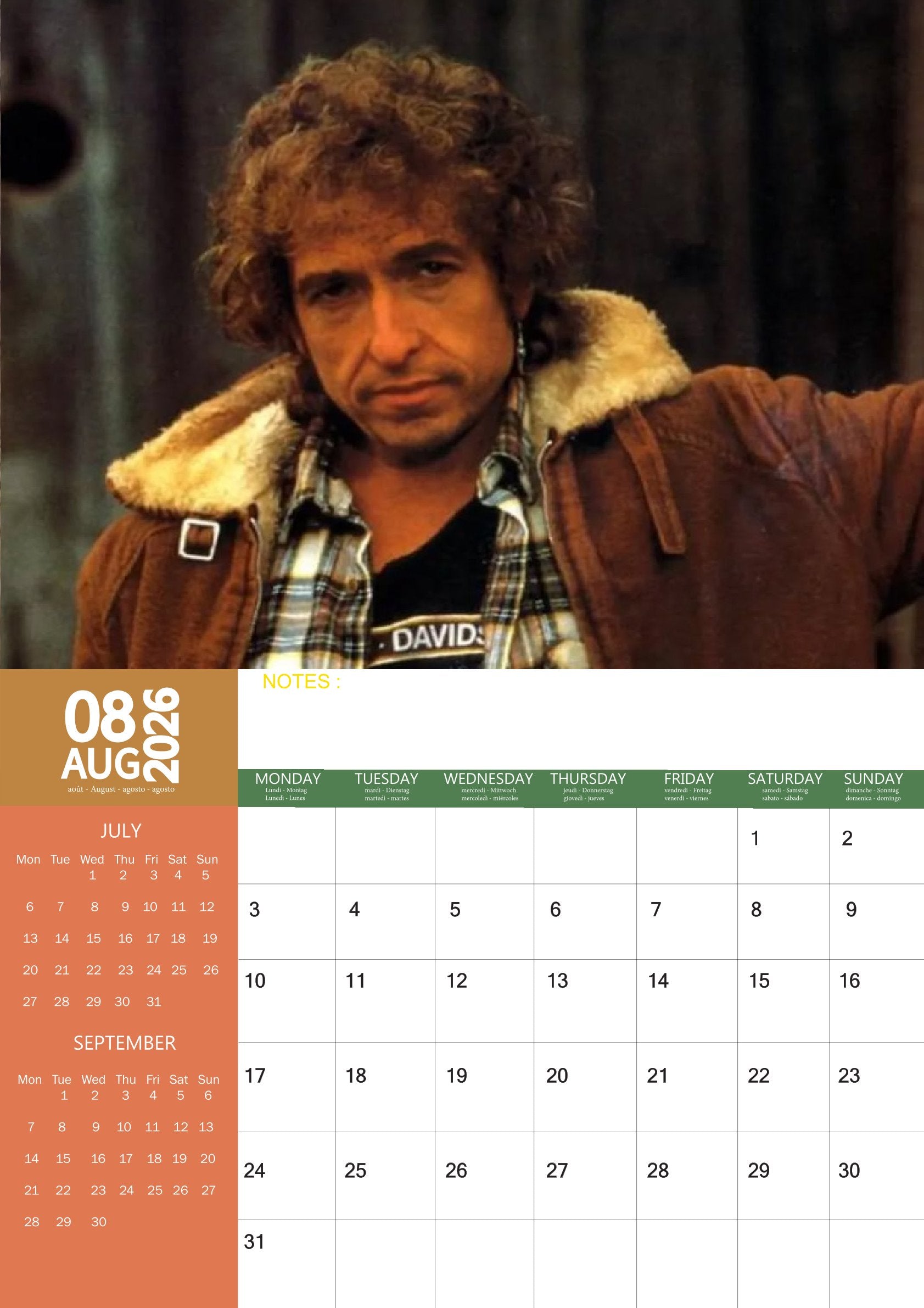 The Bob Dylan Calendar 2026 is more than a way to stay organised—it’s a celebration of a revolutionary artist whose words and melodies continue to inspire generations. Keep the spirit of Dylan alive all year round.