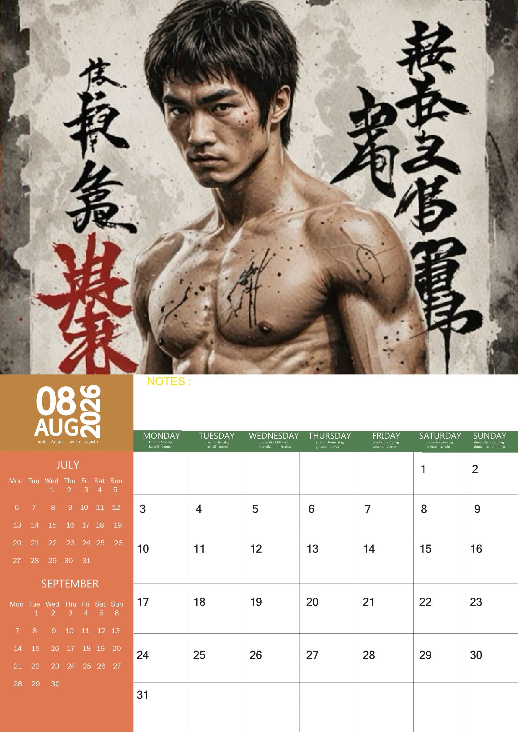 The Bruce Lee Calendar 2026 is more than a way to stay organised—it’s a tribute to a man who redefined martial arts and left an indelible mark on cinema and culture. With high-quality photography and practical design, it brings energy, motivation, and inspiration to your year.