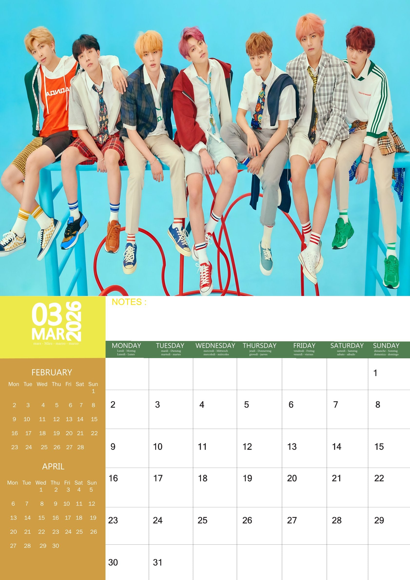 The BTS Calendar 2026 isn’t just a calendar—it’s a year-long celebration of one of the world’s most influential music groups. Whether you’re reliving concert memories or admiring their iconic style, this calendar keeps the spirit of BTS alive all year round.