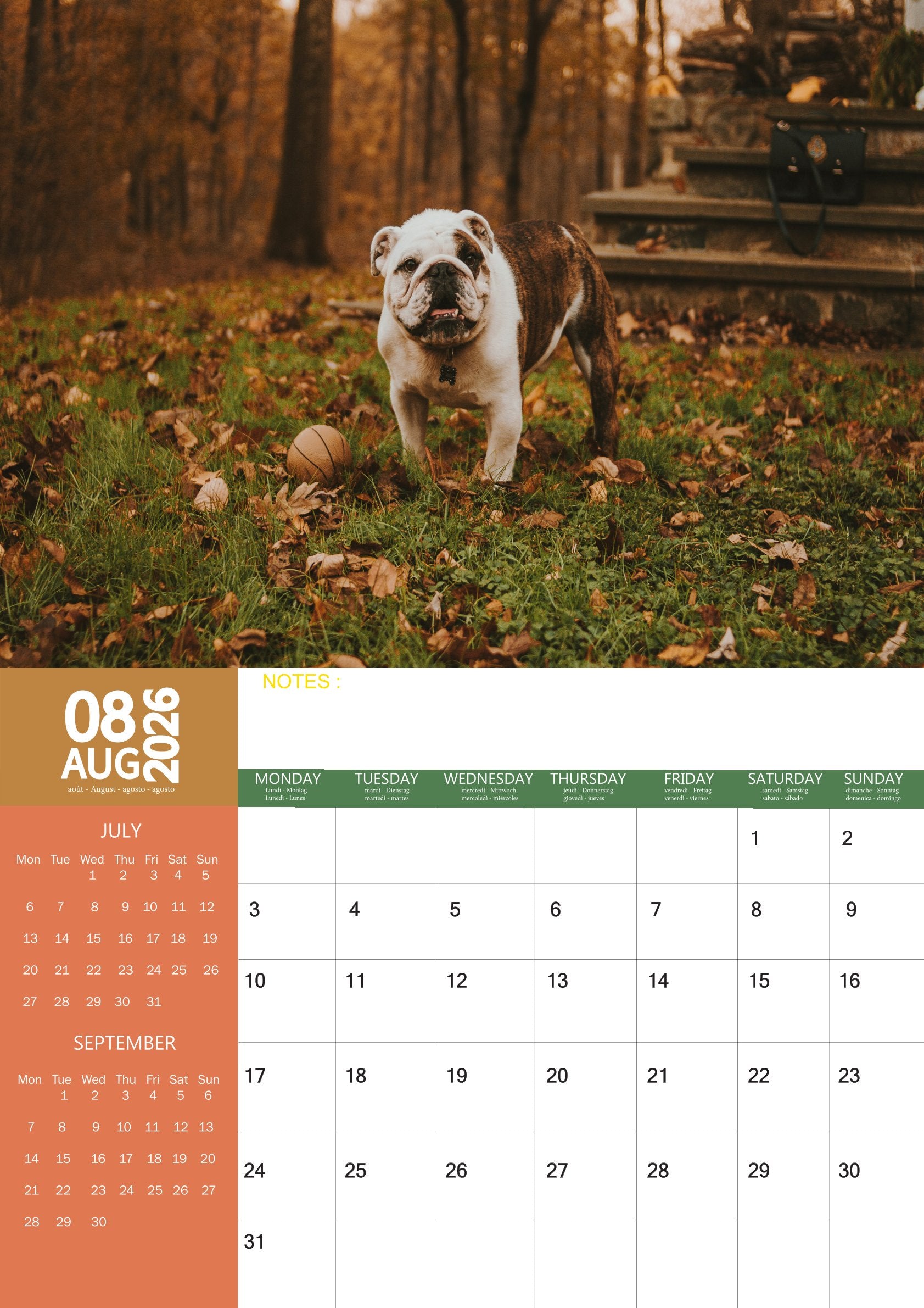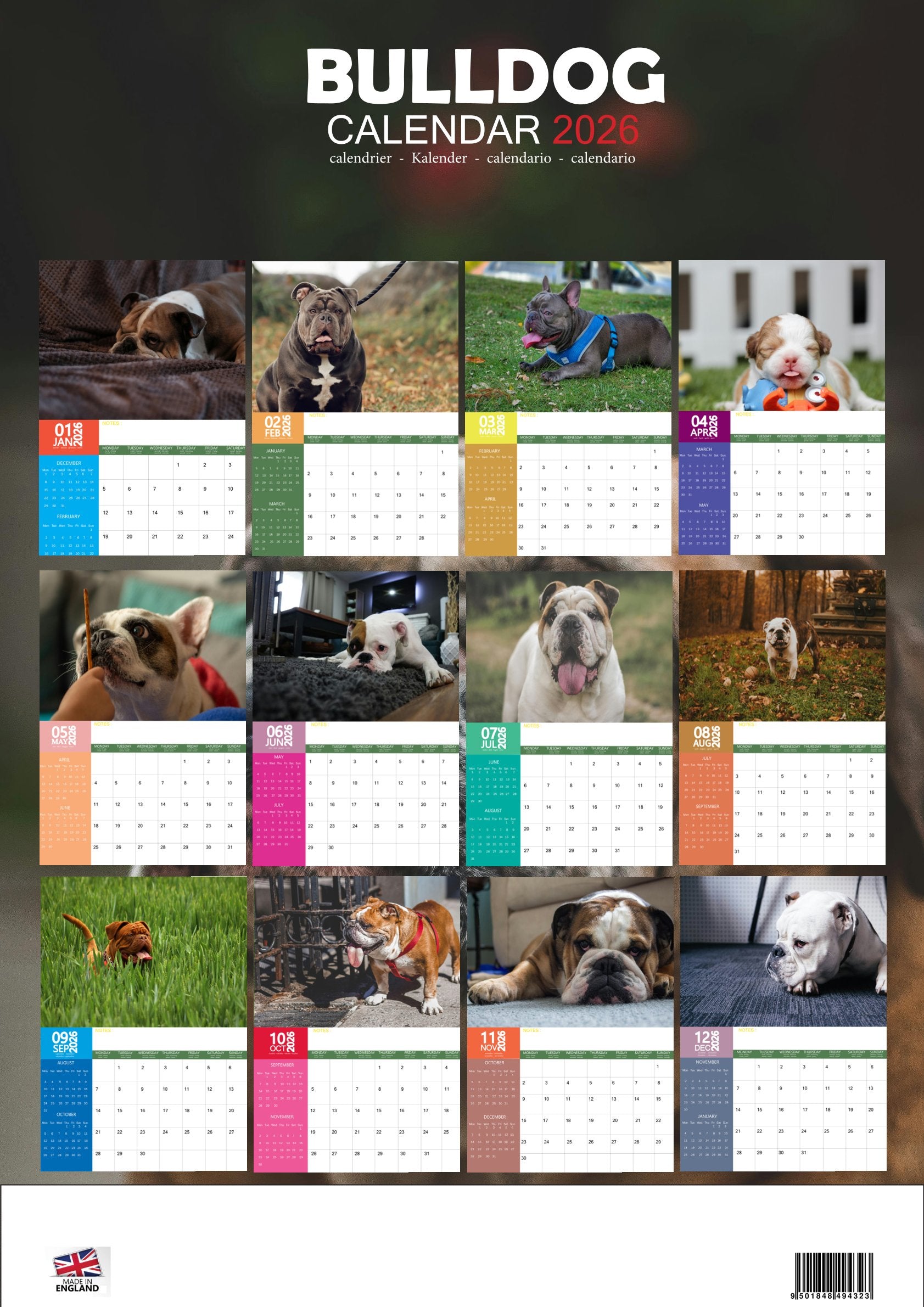 Celebrate the charm, courage, and lovable personality of the Bulldog with the Bulldog Calendar 2026. Featuring 12 high-quality photographs, this calendar captures the Bulldog’s distinctive wrinkled face, stocky build, and affectionate nature. Each month showcases this iconic breed in heartwarming and playful poses, making it a perfect addition for any dog lover.