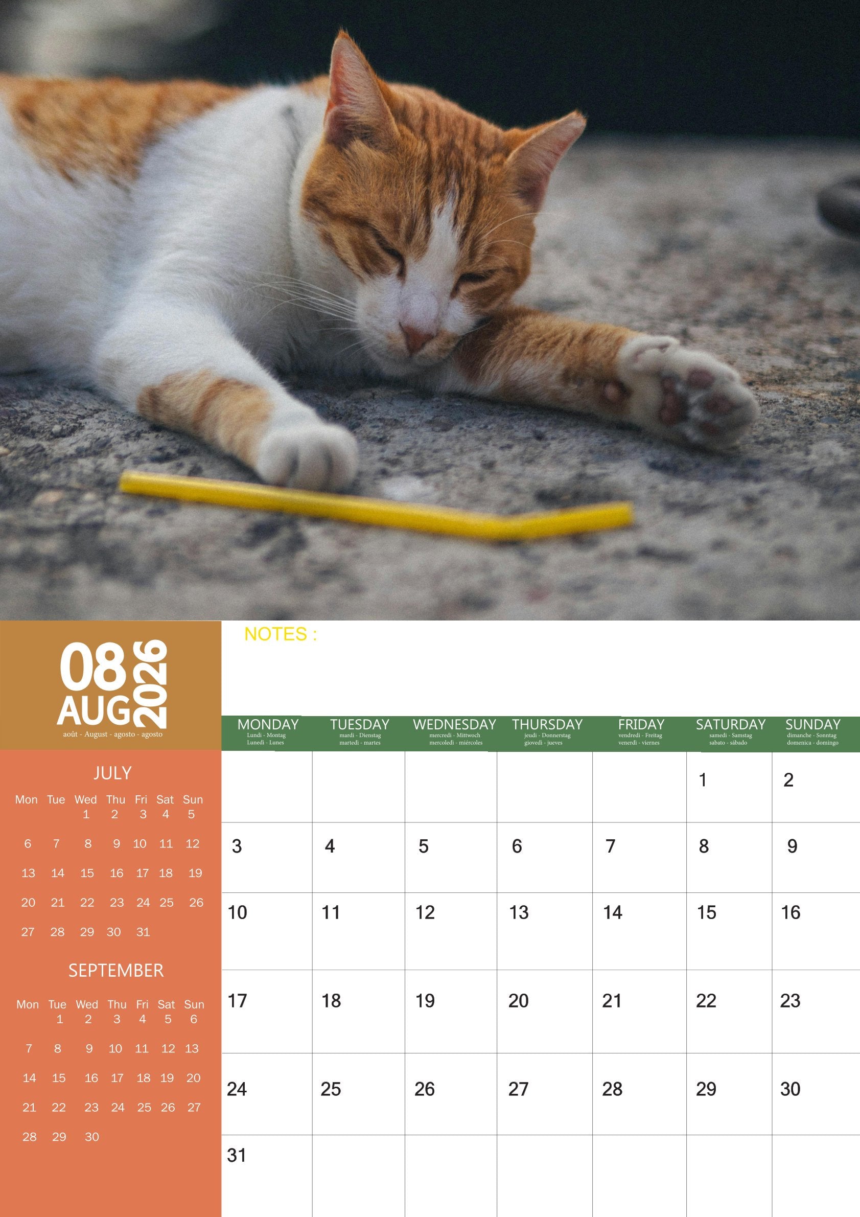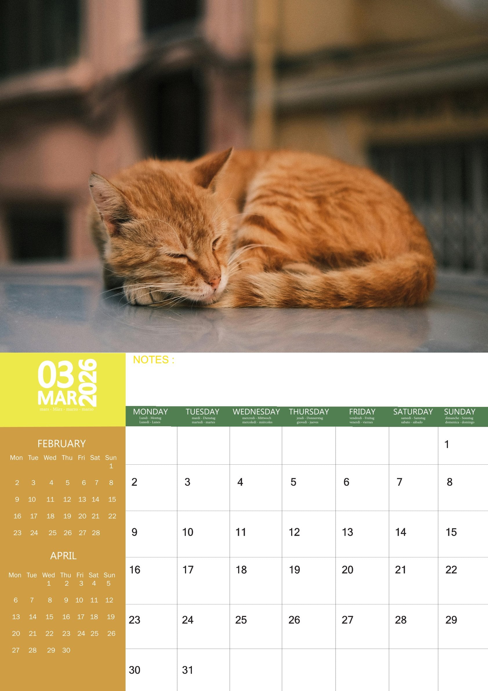 The Cat Nap Calendar 2026 is more than just a planner—it’s a celebration of calm, comfort, and feline charm. With delightful photography and a practical design, it’s sure to bring a smile to your face each month of the year.