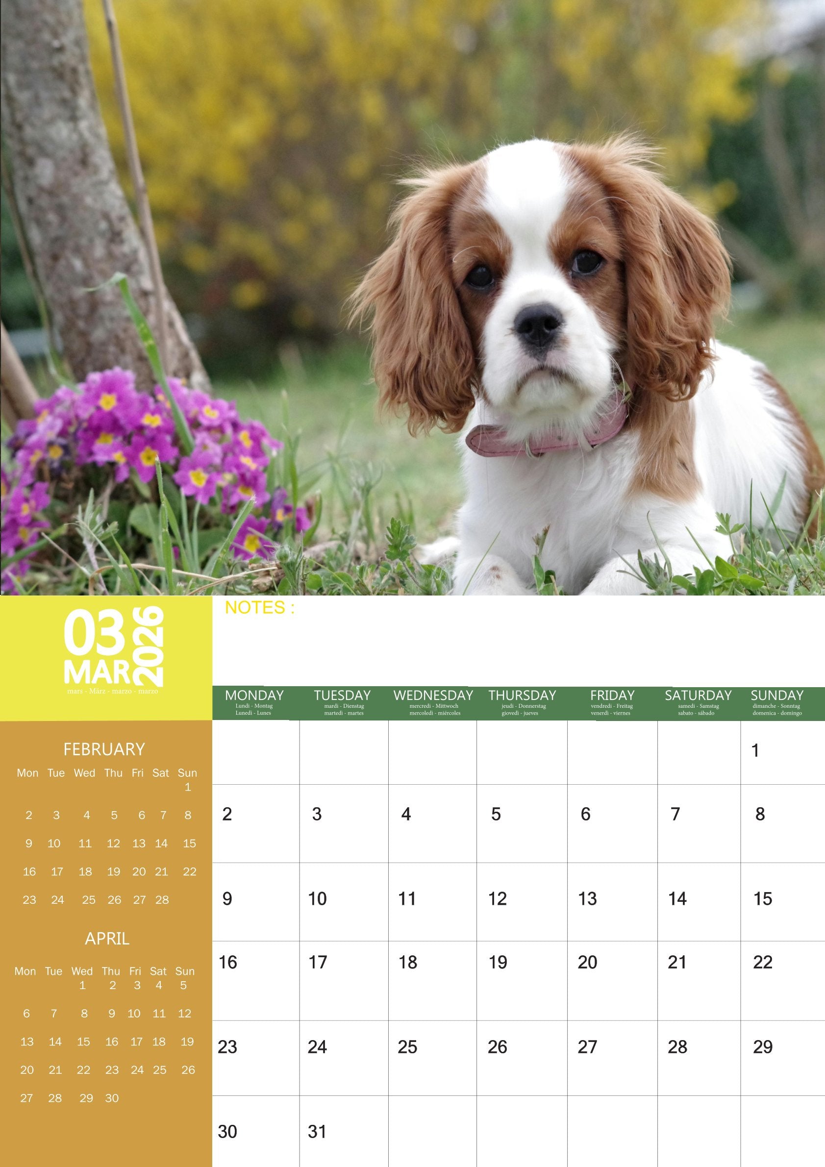 Cavalier King Charles Dog Calendar 2026 – M-PRA Range