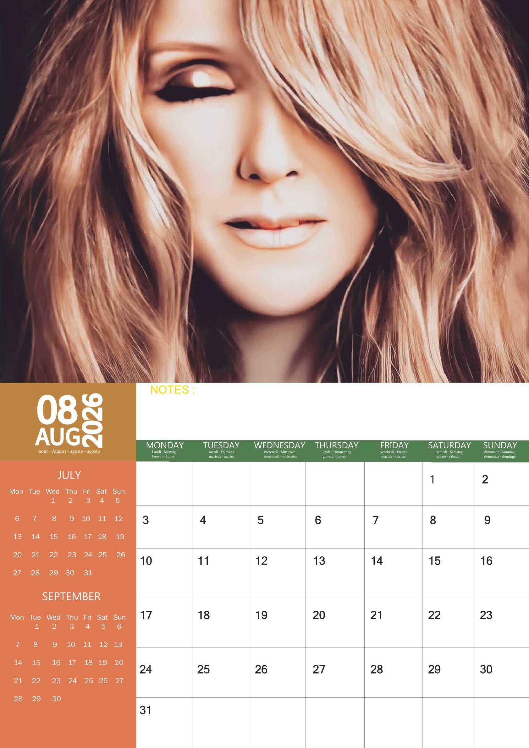 The Celine Dion Calendar 2026 is more than just a way to track your year—it’s a celebration of a voice that defined generations. From iconic ballads to unforgettable live shows, Celine’s spirit and grace shine through in every image, making this a must-have for any fan.