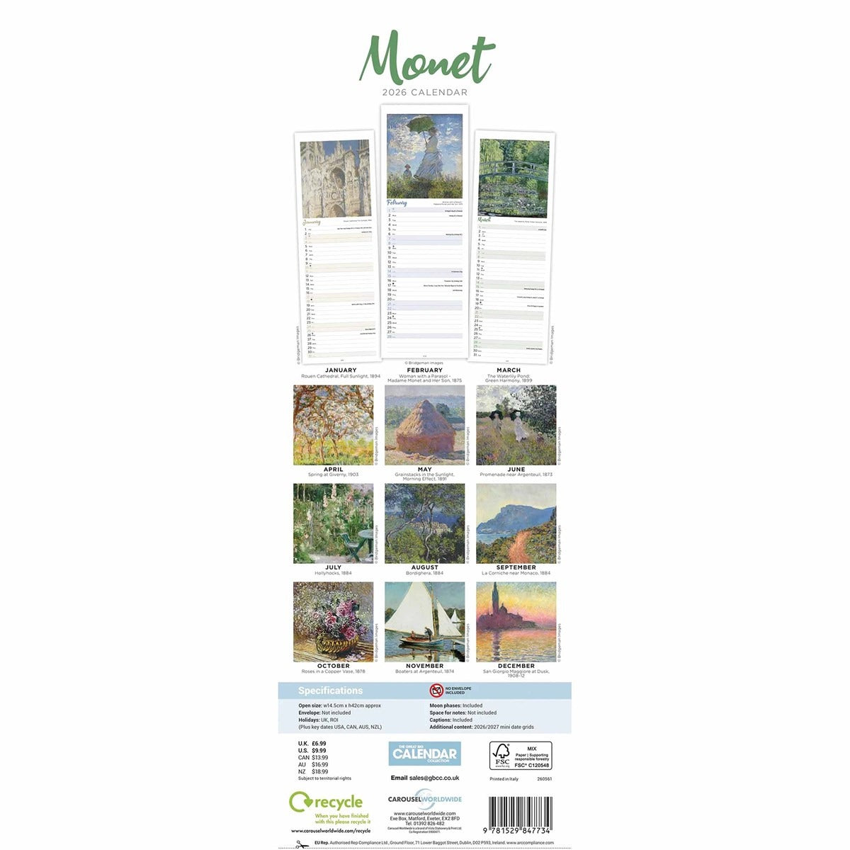 Claude Monet Slim Calendar 2026 – Celebrate Impressionist Masterpieces