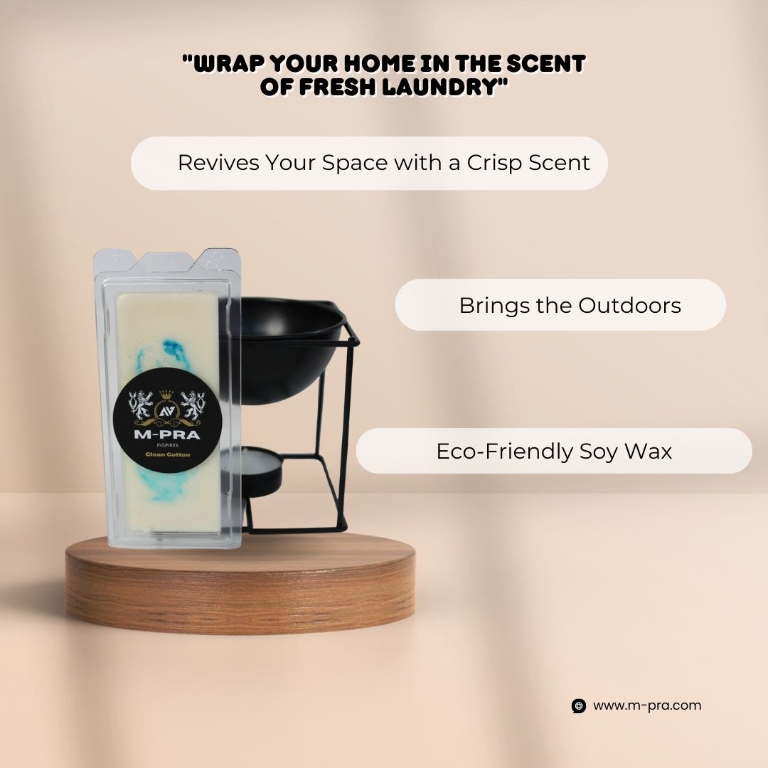 This perfectly recreated Wax Melt scent of Clean Cotton by subtly mixing that fresh linen scent with a touch of musky floral accord with violet and orange blossom, along with refreshing hints of Lily and Jasmine.
