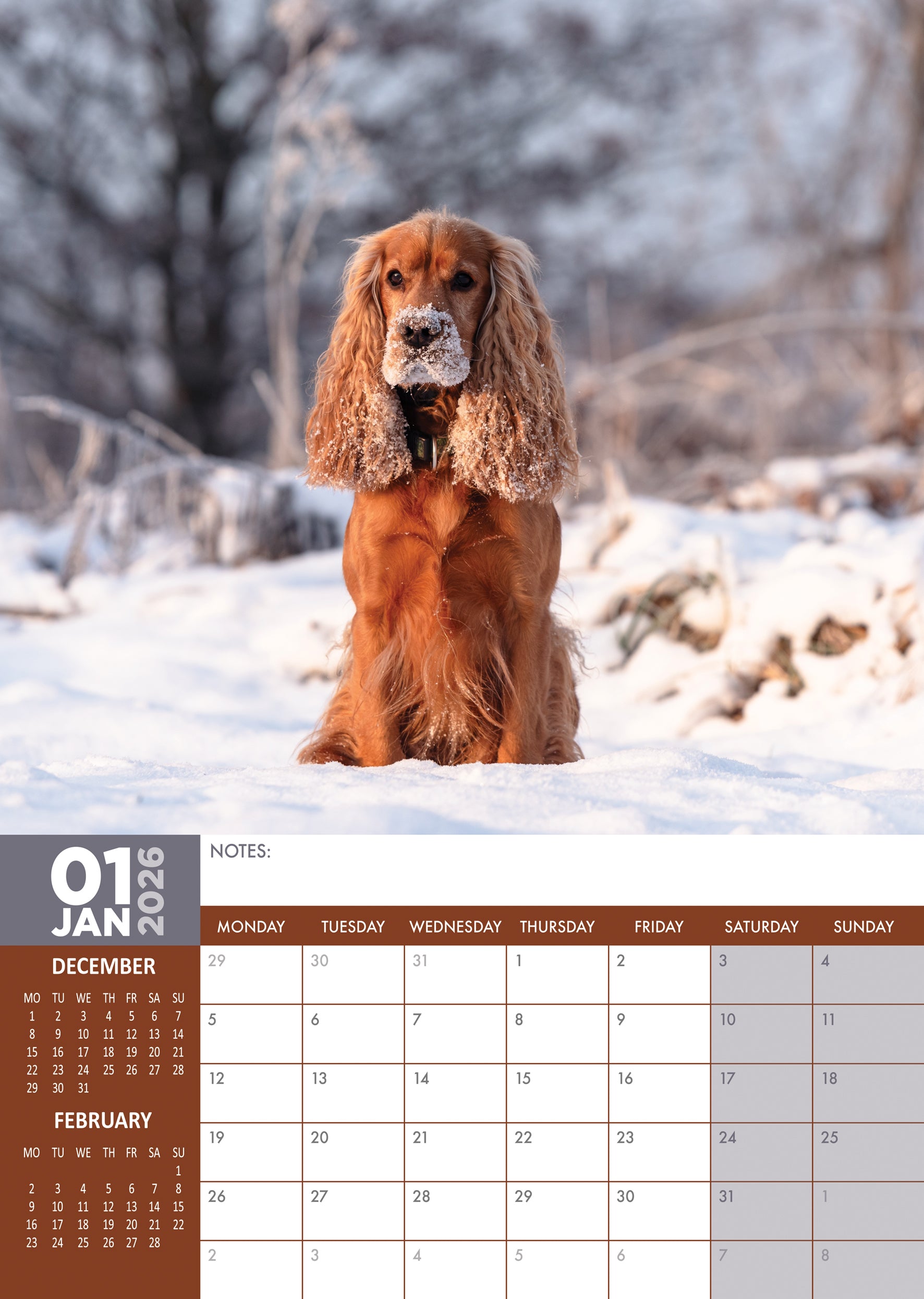 Whether you're a lifelong Cocker Spaniel owner or simply a fan of dogs with soulful eyes and wagging tails, this calendar is a delightful way to stay organized in 2026.