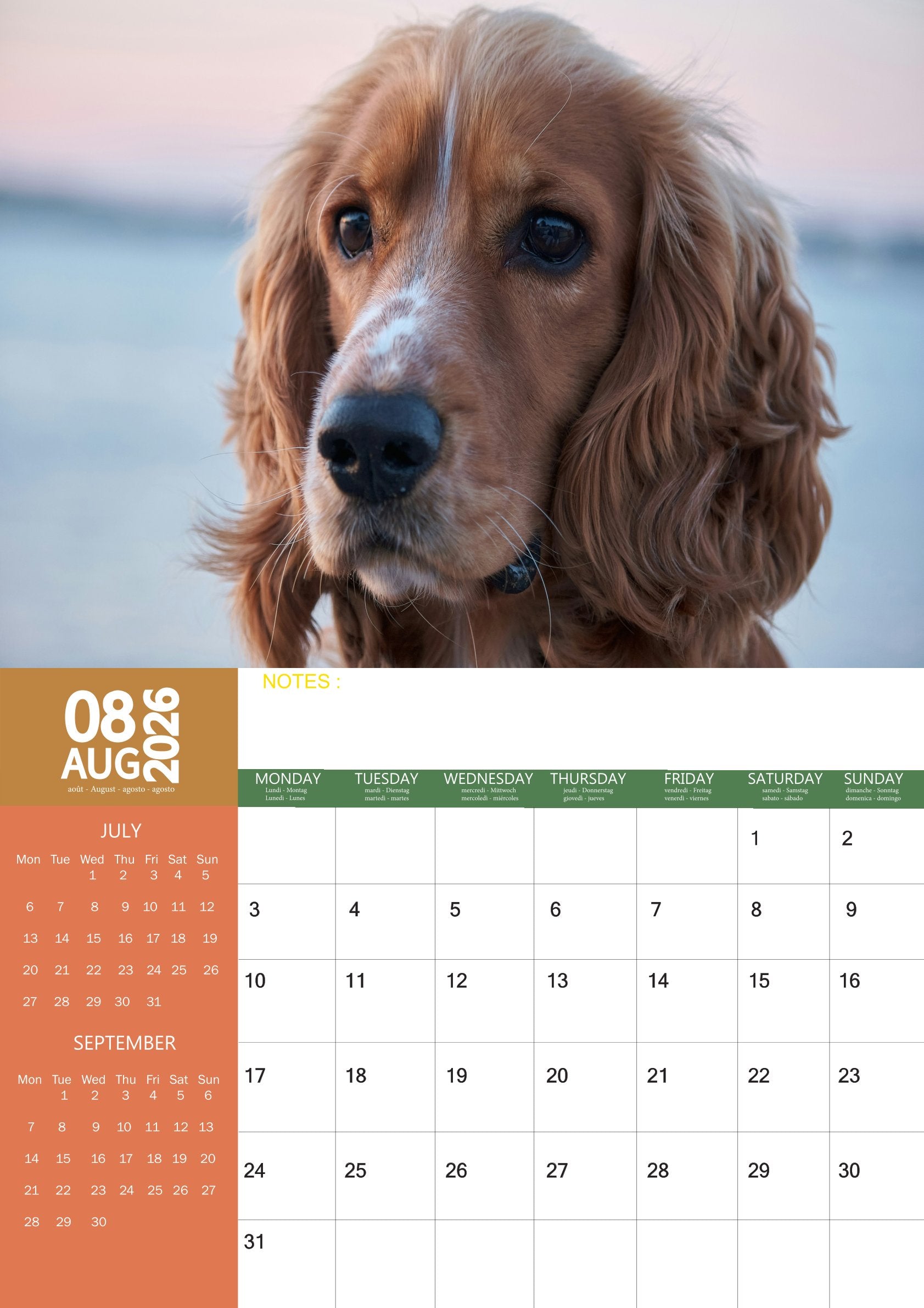 The Cocker Spaniel Calendar 2026 is more than just a calendar—it’s a celebration of one of the most beloved and charming breeds. With elegant photography and a practical layout, it brings the Cocker Spaniel’s warmth, playfulness, and affectionate nature into your home all year long.
