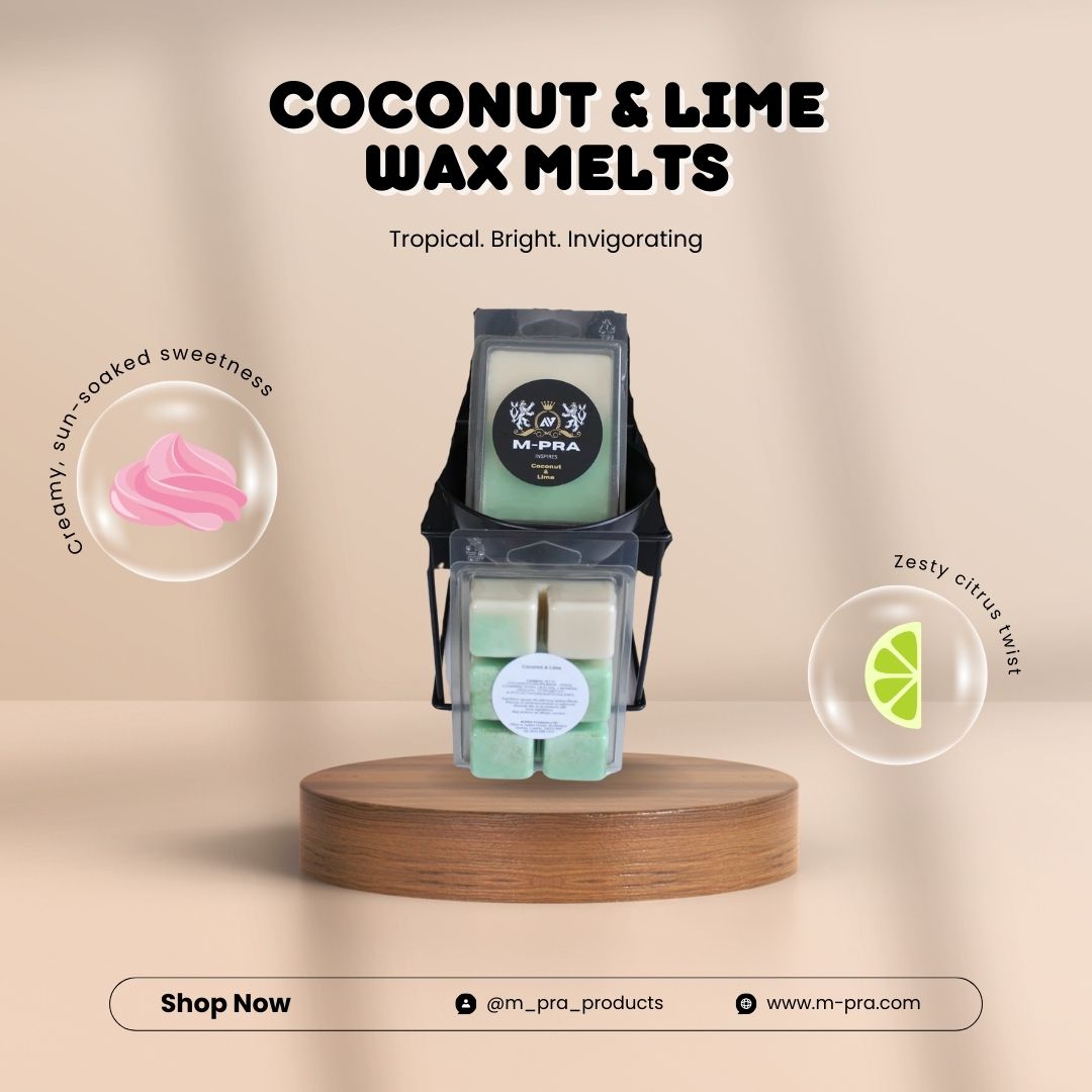 Our Coconut and Lime Wax Melt is a refreshing fragrance of sweet Coconut and Lime.
