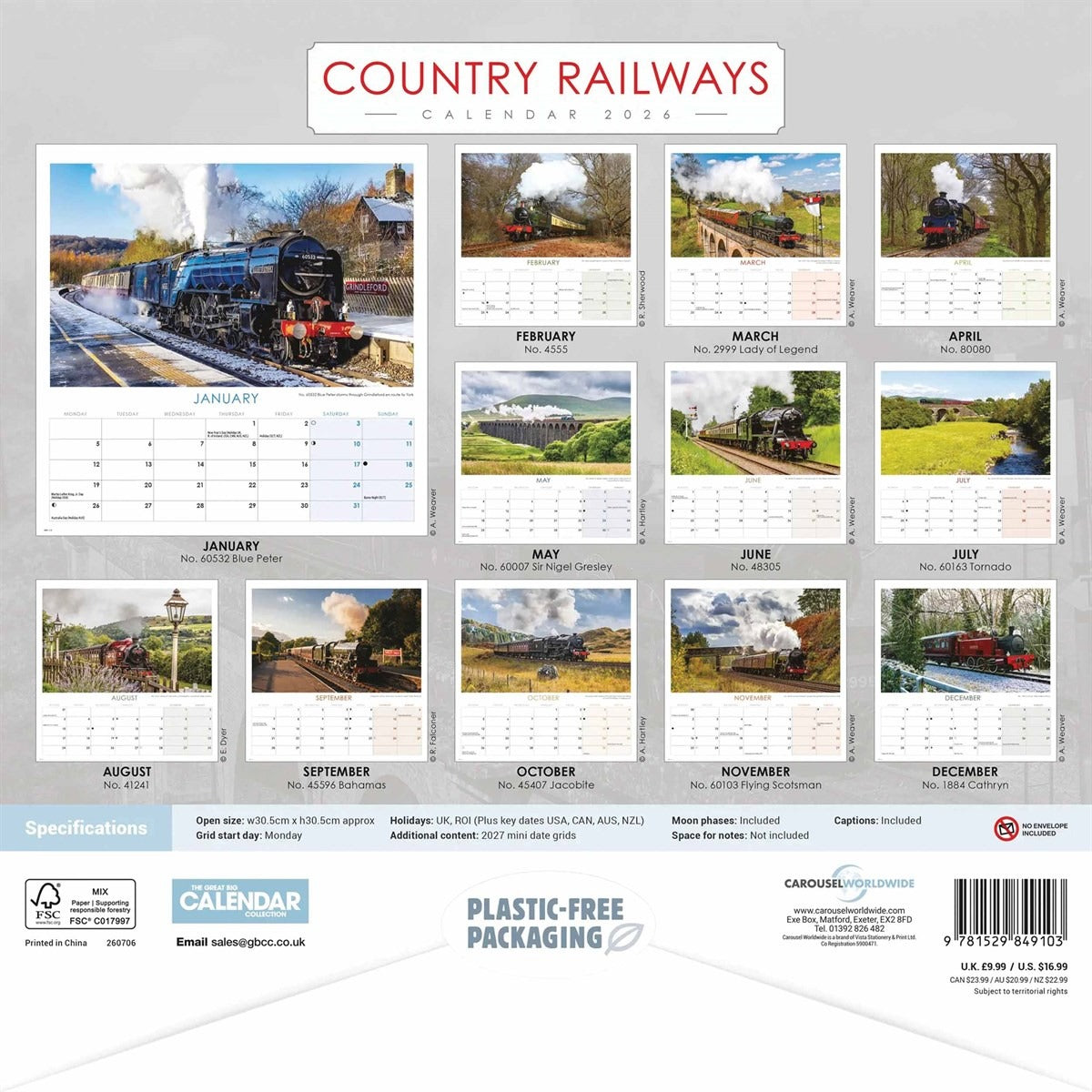 Country Railways Square Calendar 2026 – Relive the Golden Age of Steam