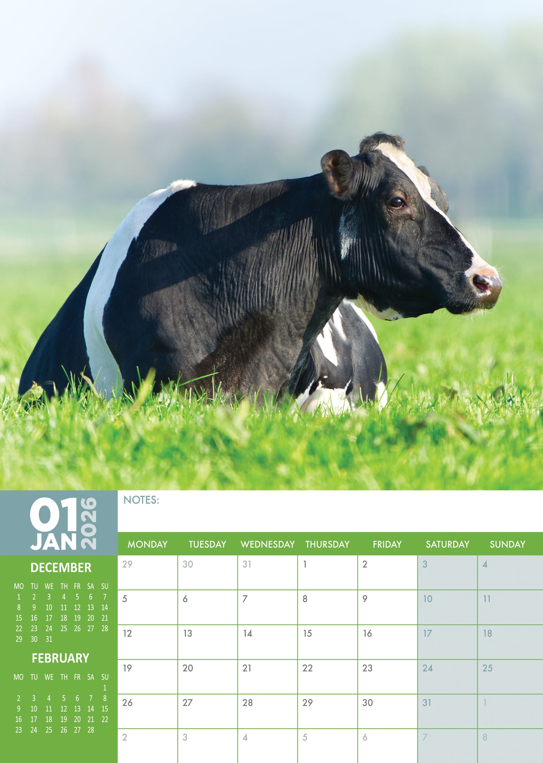 Whether you're a cow enthusiast, a farmer, or someone who simply enjoys the beauty of rural life, the Cows Calendar 2026 will add a rustic and peaceful vibe to any room.