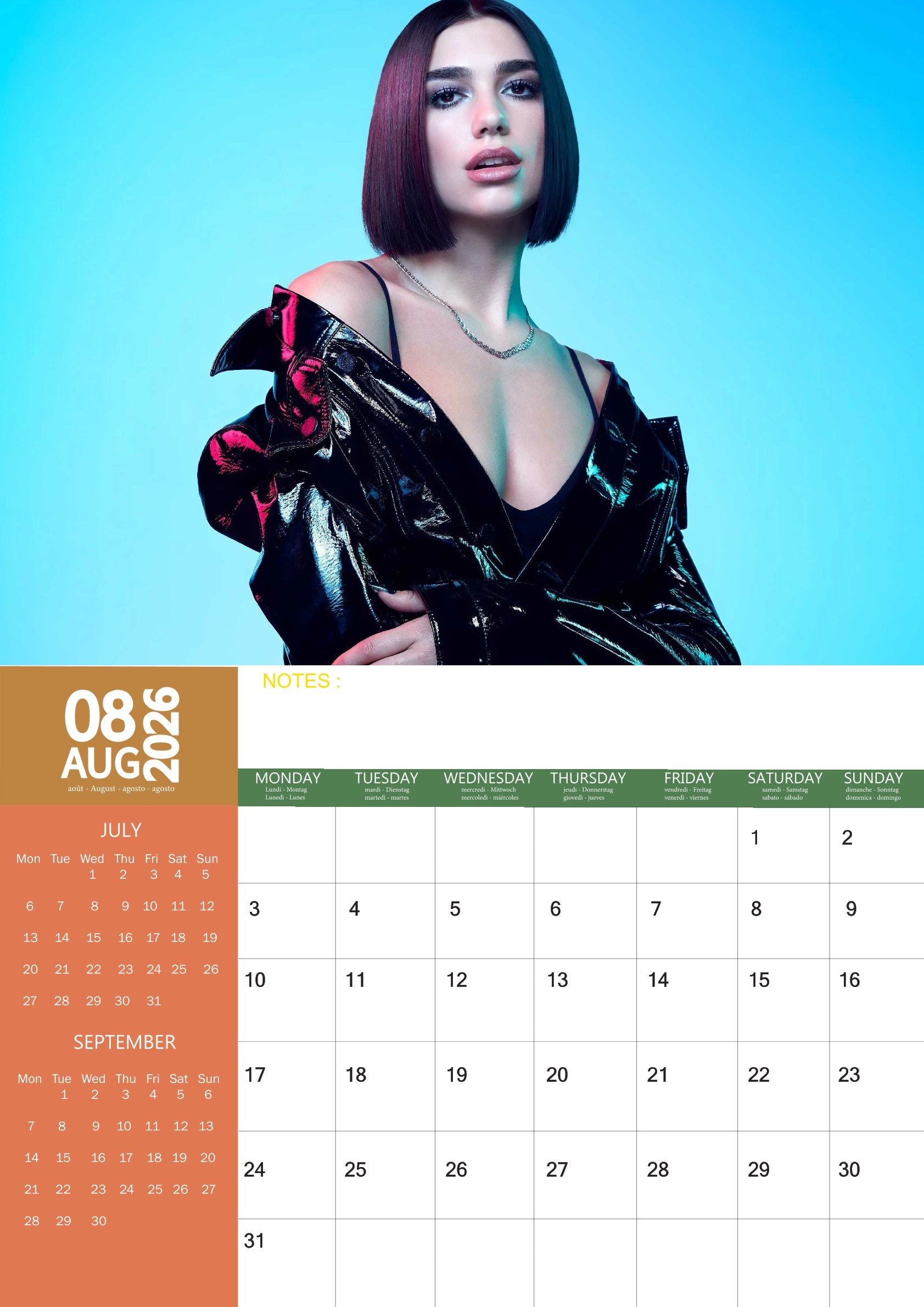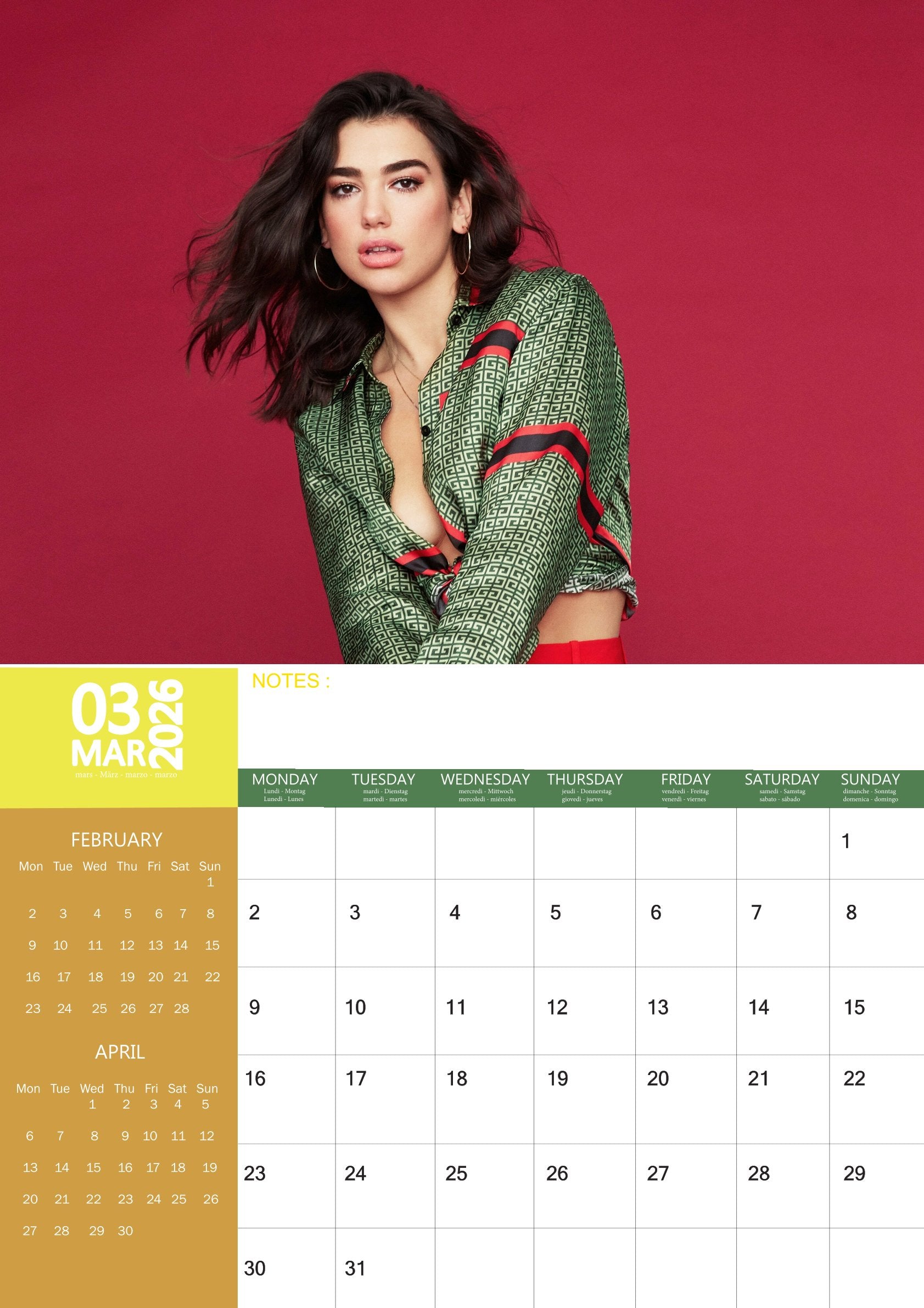 The Dua Lipa Calendar 2026 is more than just a way to organise your year—it’s a tribute to one of the most exciting and influential stars of modern pop. Keep Dua’s energy and confidence on your wall all year long.