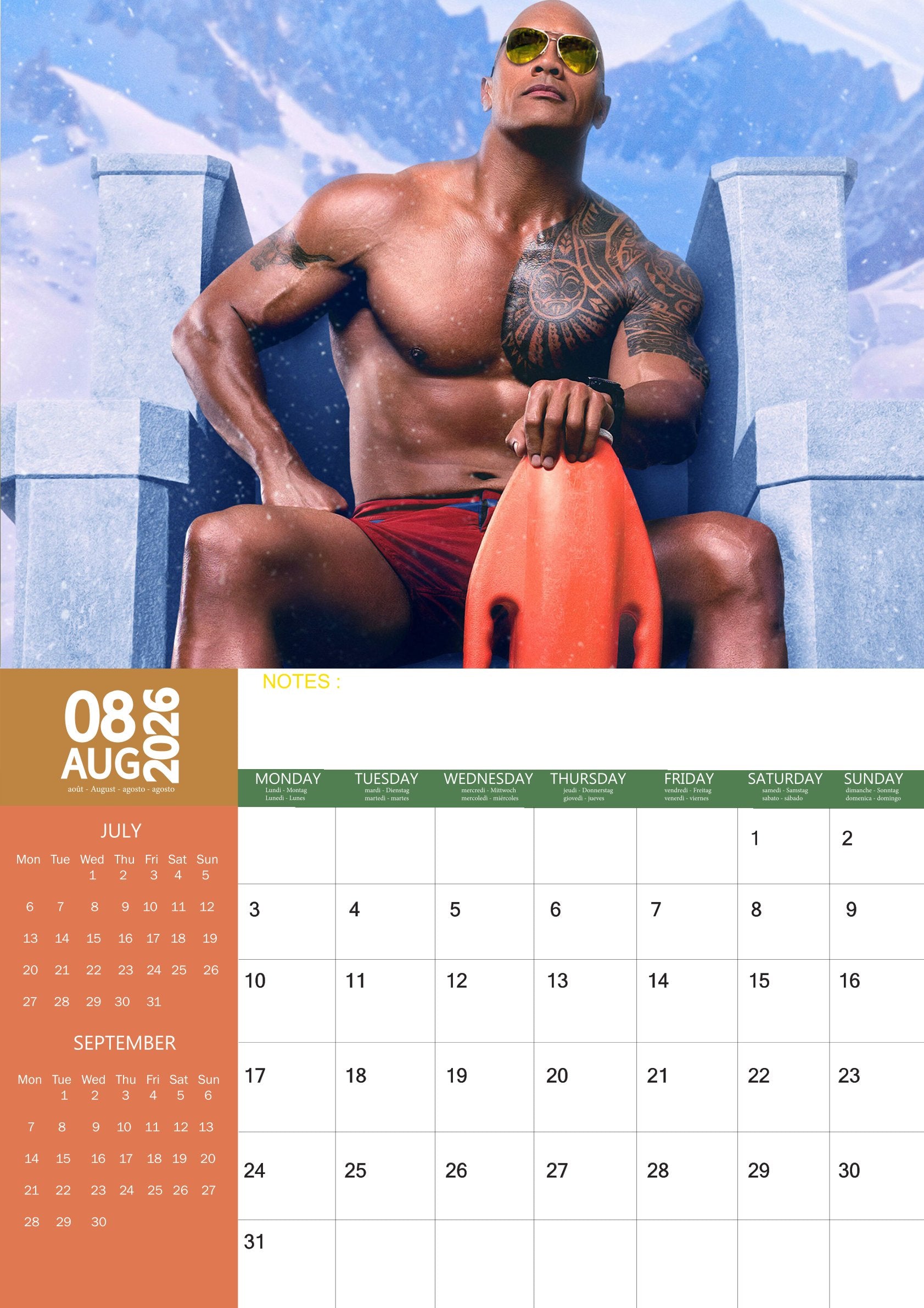 The Dwayne Johnson Calendar 2026 is more than a way to mark your days—it’s a celebration of hard work, determination, and star power. With striking imagery and practical design, it brings motivation and inspiration to your year while keeping you organised.