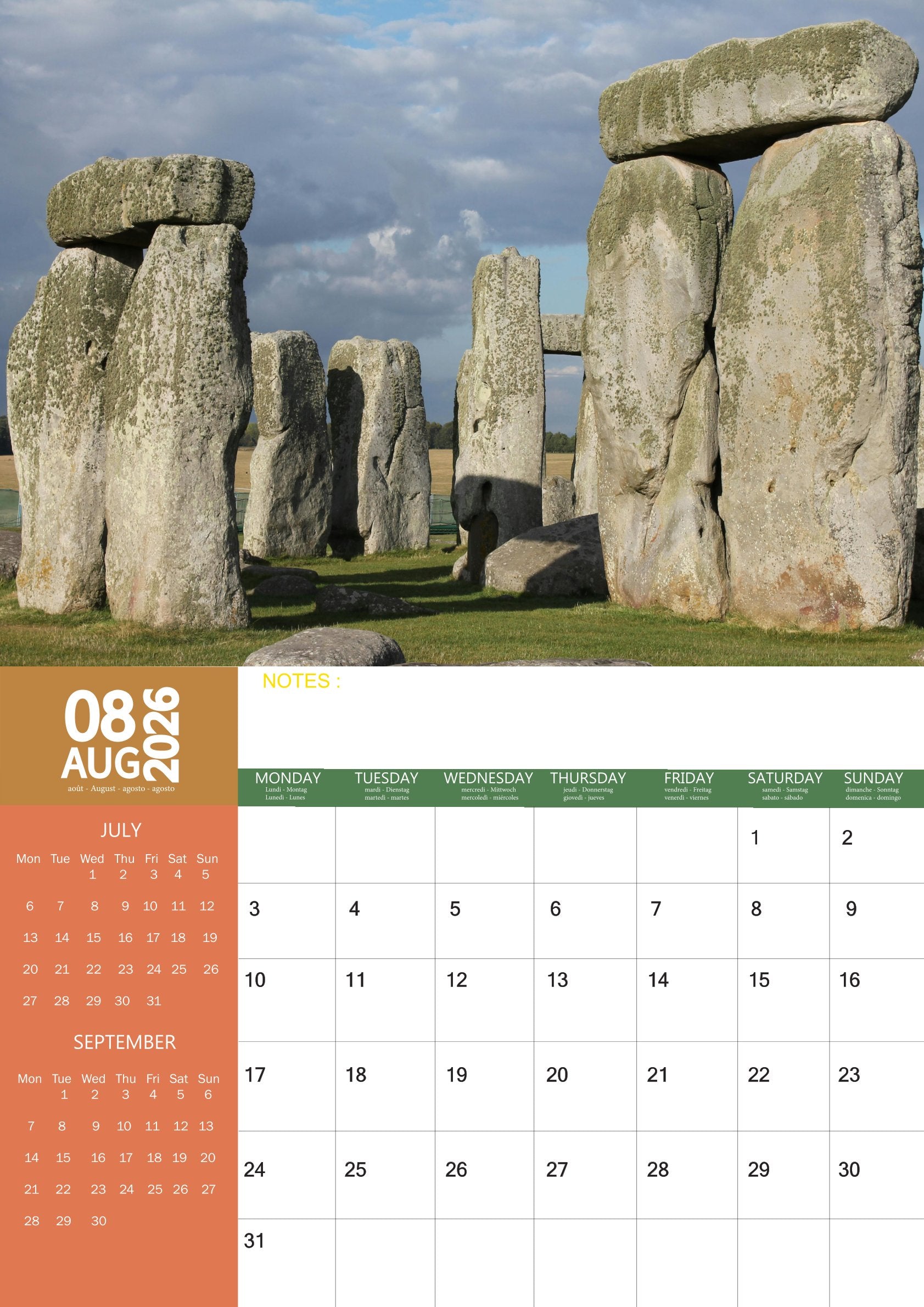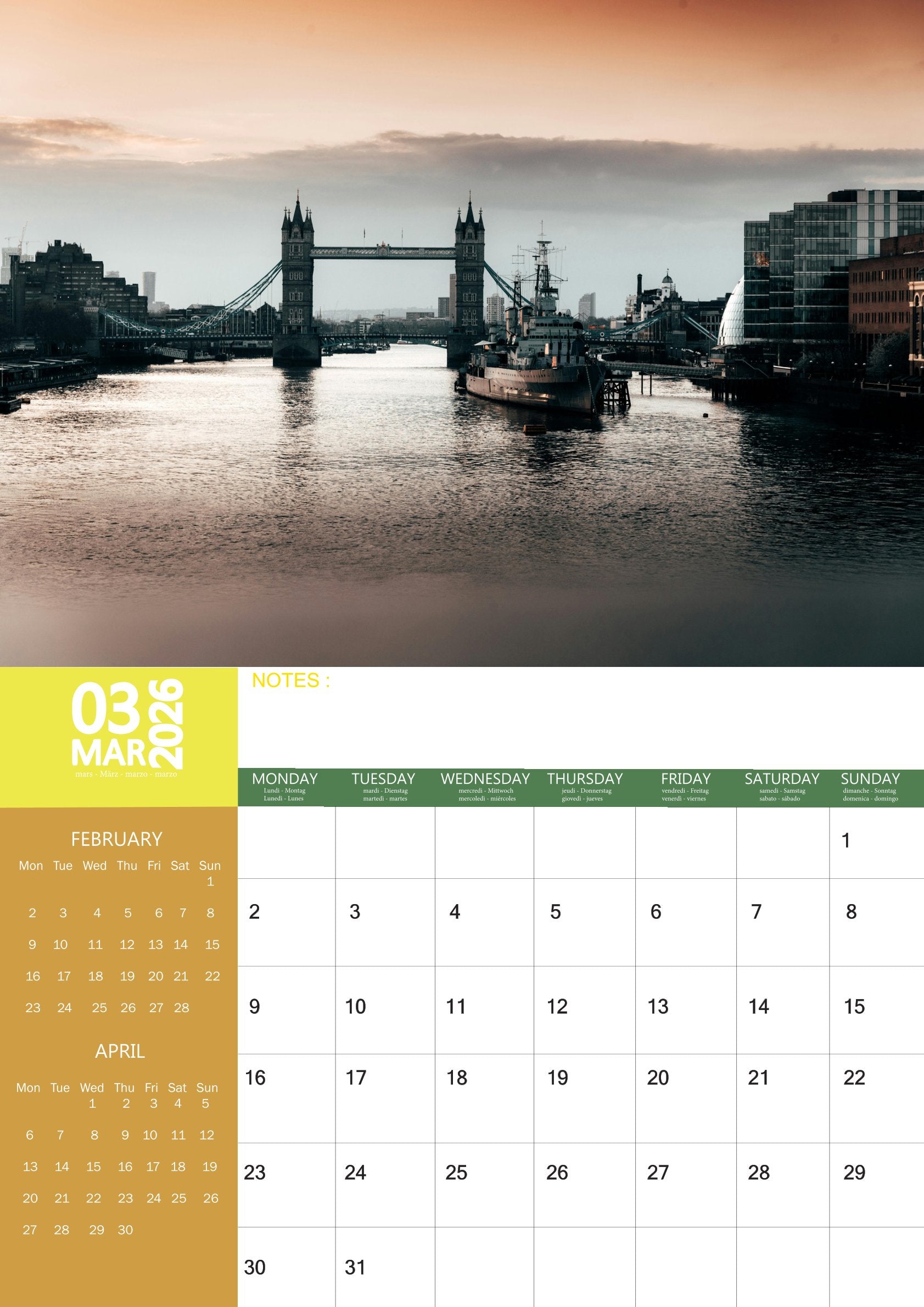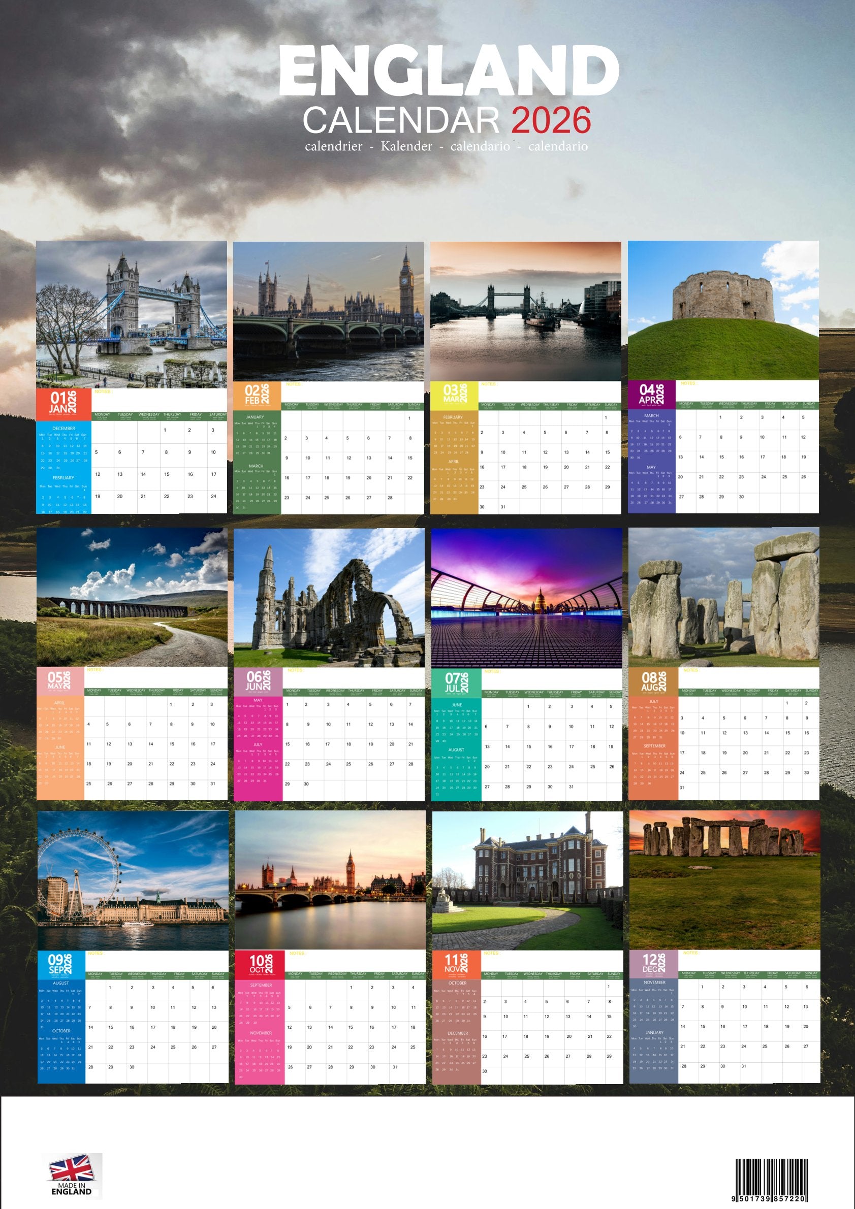 Celebrate the charm, history, and landscapes of one of the world’s most iconic countries with the England Calendar 2026. Featuring 12 stunning images, this calendar showcases England’s beauty—from rolling countryside and historic castles to bustling cities and coastal scenes. Each month highlights the timeless character and rich heritage that make England truly unique.