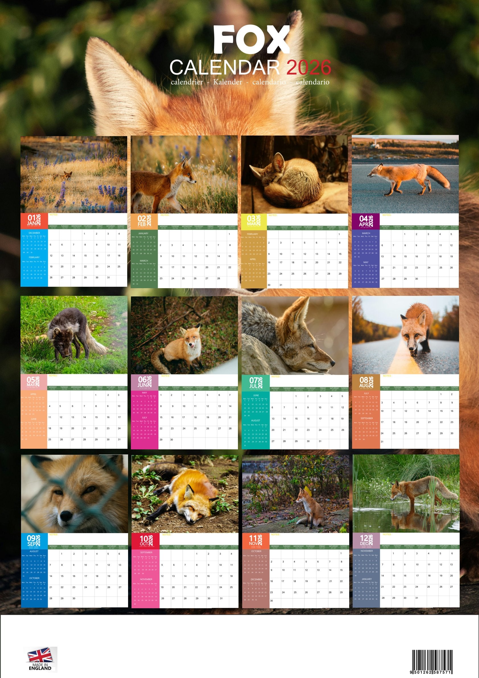 Celebrate the cunning beauty and wild spirit of foxes with the Fox Calendar 2026. Featuring 12 captivating photographs, this calendar highlights foxes in all their splendour—from playful kits exploring the world to striking adults roaming forests and fields. Each month offers a stunning portrait of one of nature’s most enchanting creatures.