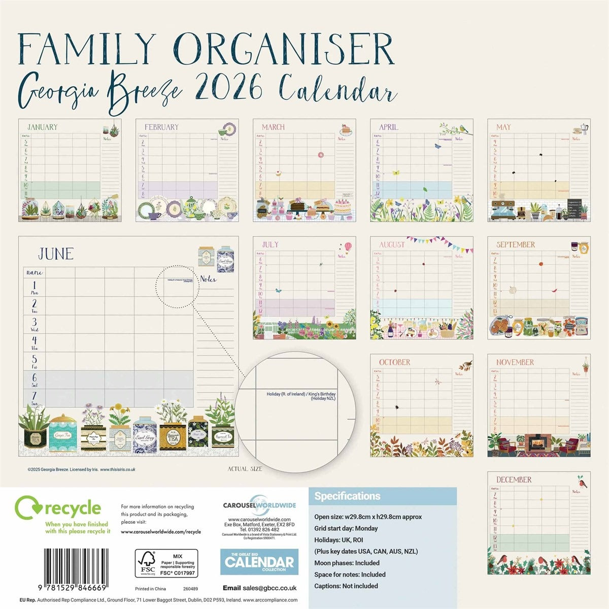 Georgia Breeze Family Square Organiser 2026 – Elegant Organisation for Every Week