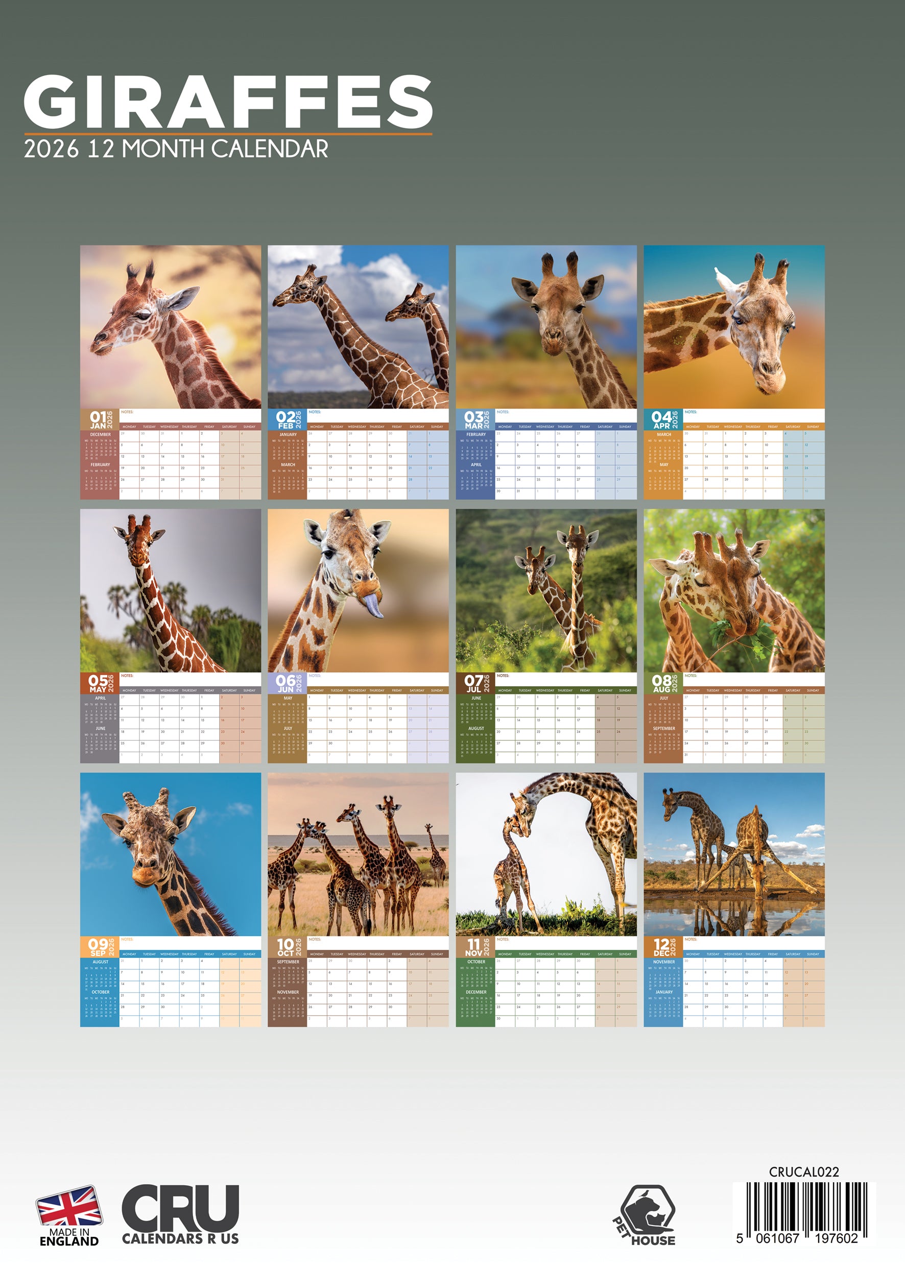 Ideal for animal lovers, wildlife enthusiasts, and anyone who appreciates the majesty of these magnificent creatures, the Giraffes Calendar 2026 will add a touch of grace and wonder to any room.