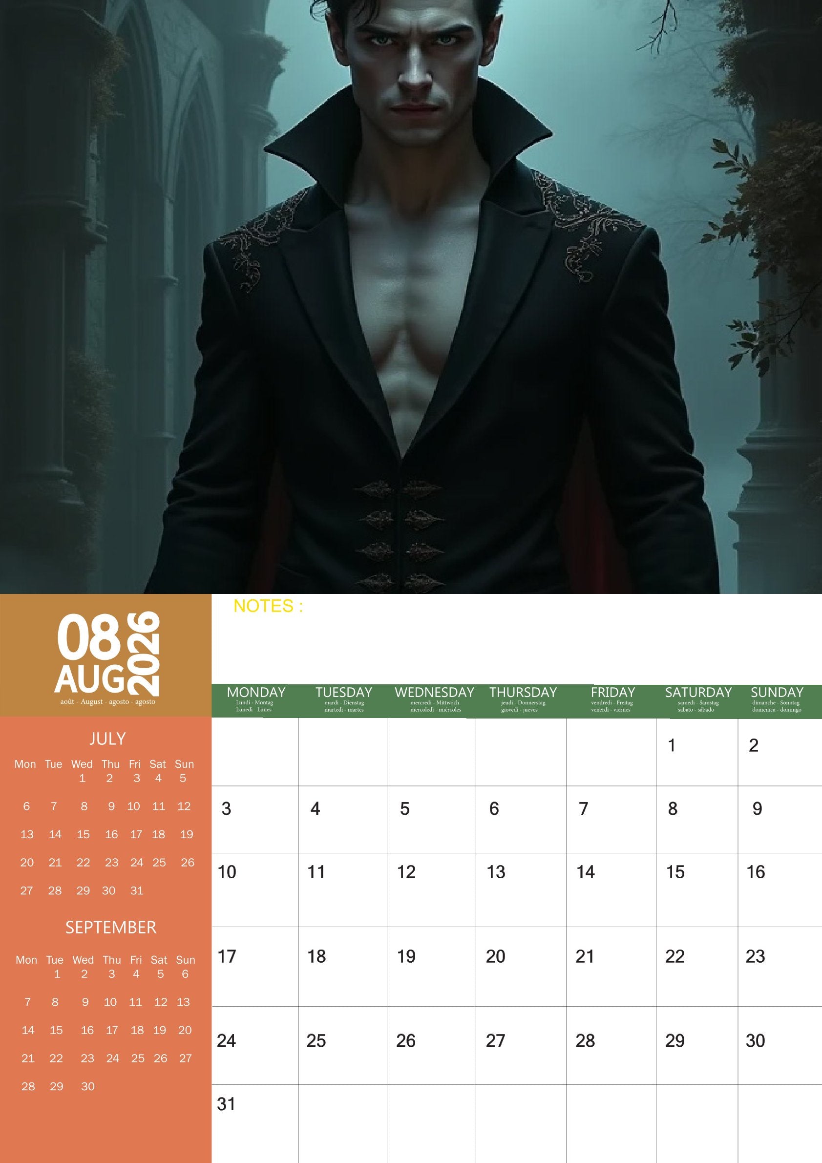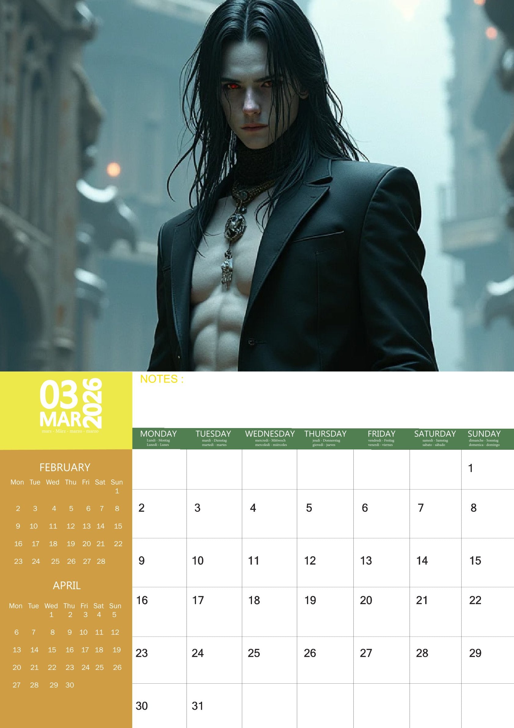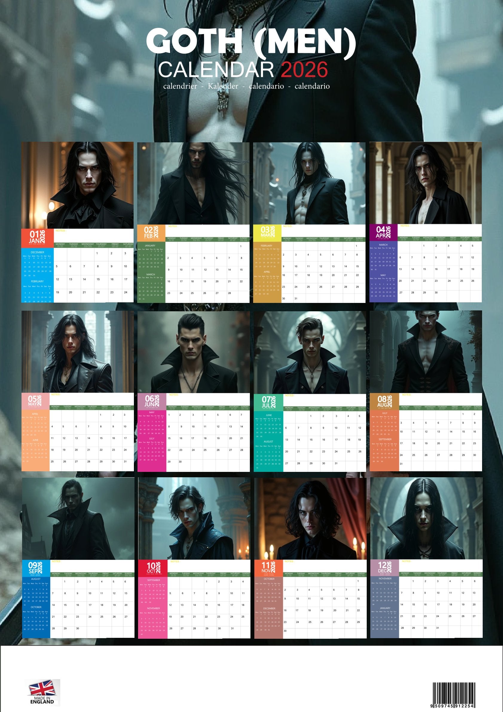 The Goth (Men) Calendar 2026 is more than a calendar — it’s a year-long celebration of Gothic elegance and intensity. From striking portraits to moody backdrops, it brings individuality, art, and attitude into your everyday space.