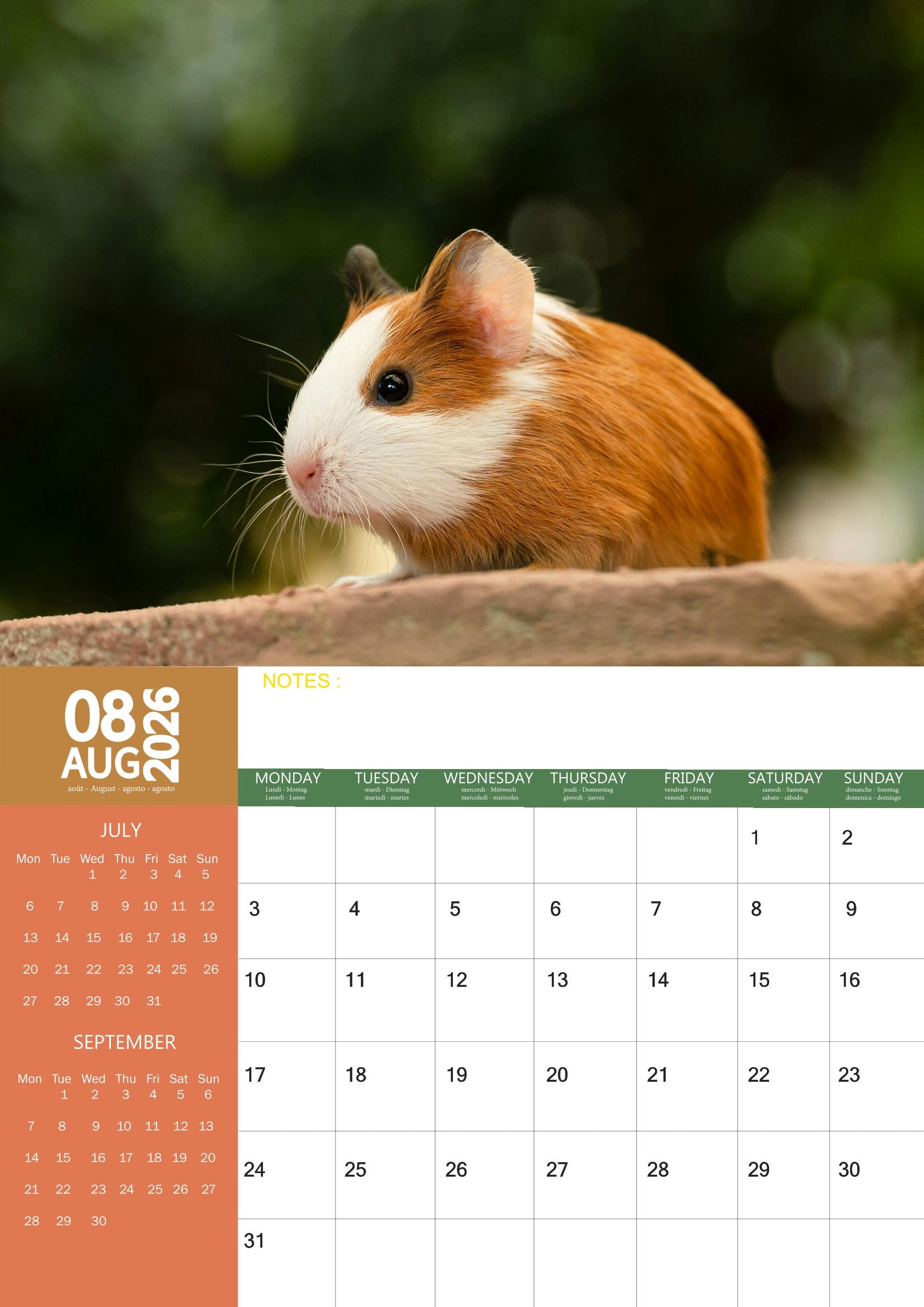 The Guinea Pig Calendar 2026 is more than just a way to keep track of your days—it’s a year-long dose of joy and warmth. Perfect for anyone who loves these gentle and affectionate pets, it makes a delightful decoration and a daily reminder of the simple happiness guinea pigs bring.