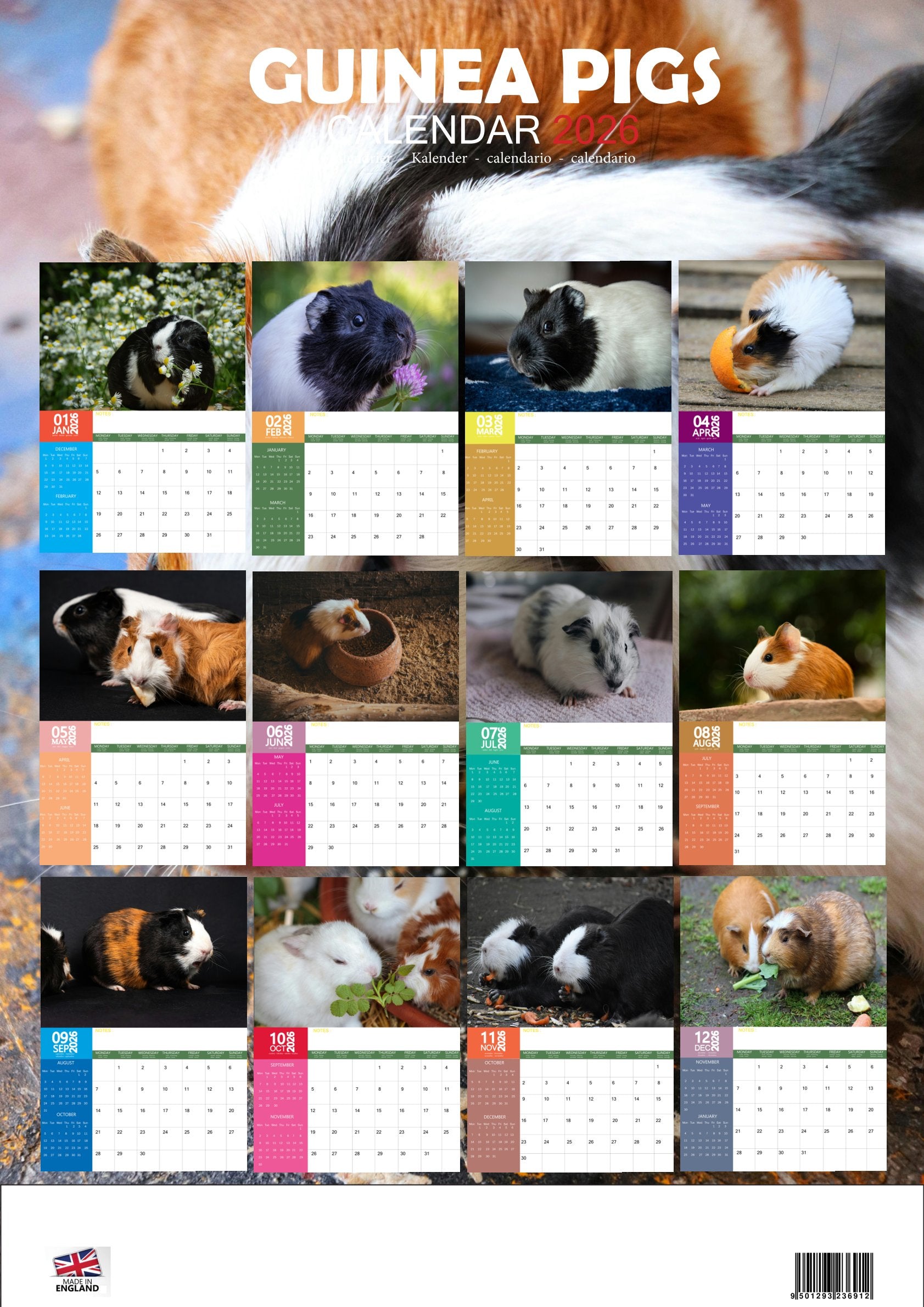 Brighten up your year with the adorable Guinea Pig Calendar 2026. Featuring 12 heartwarming photographs, this calendar showcases guinea pigs in all their cuteness—whether nibbling on veggies, playing in cosy settings, or simply showing off their sweet personalities. Each month brings a smile with these lovable little companions.