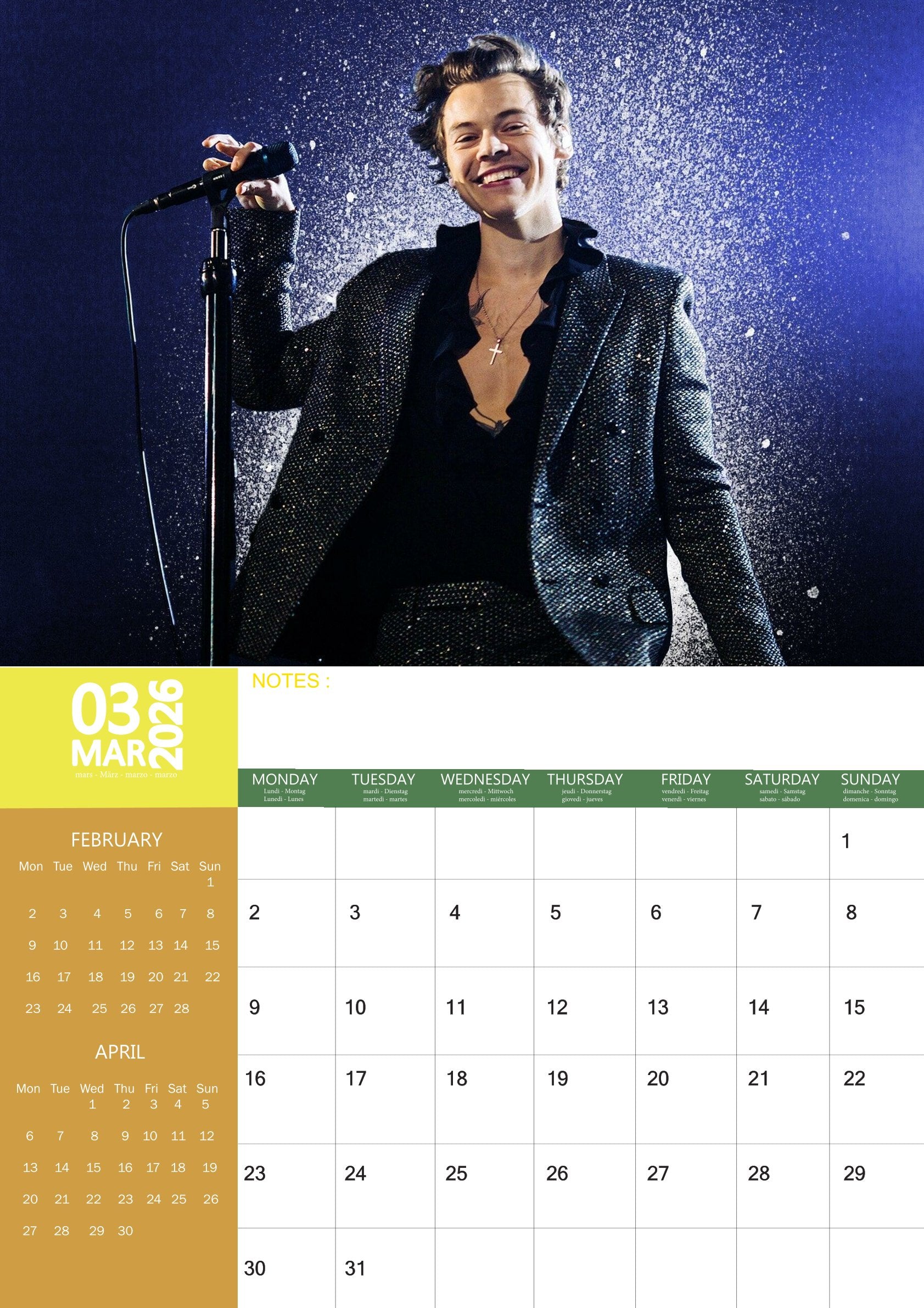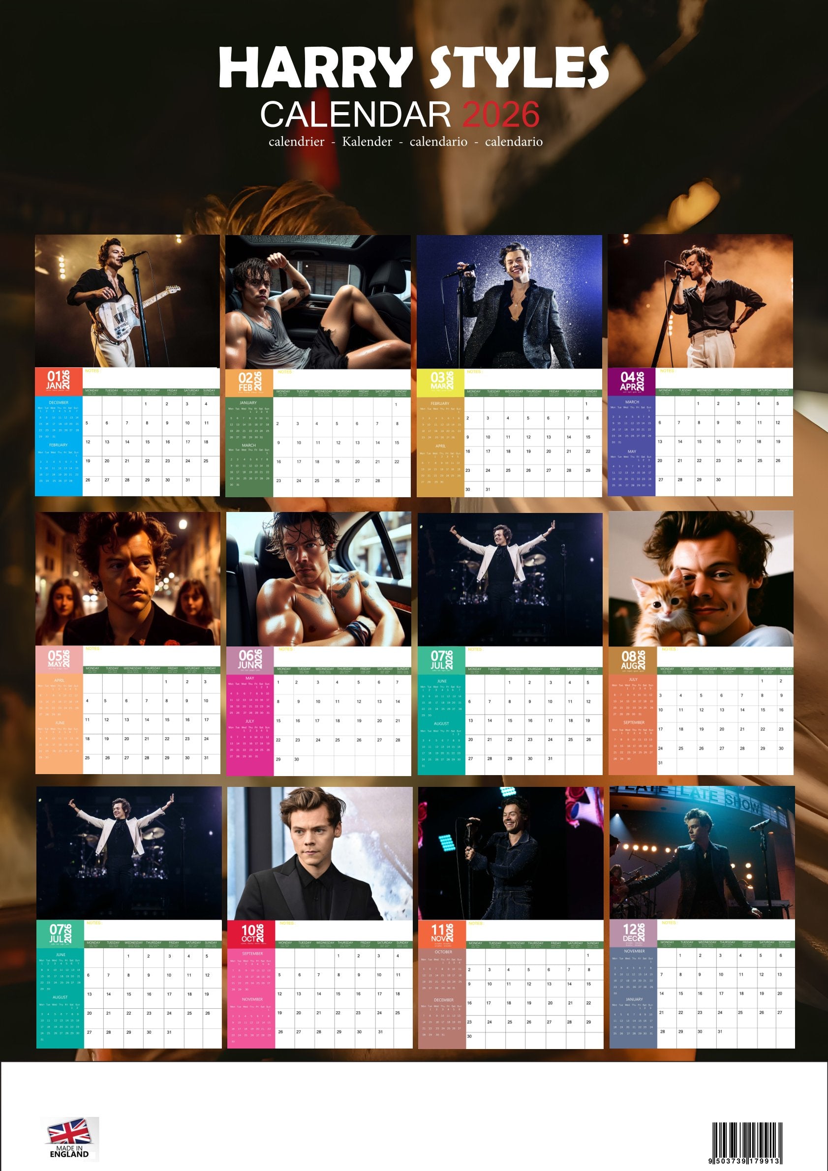 Step into the stylish world of one of music’s most beloved icons with the Harry Styles Calendar 2026. Featuring 12 captivating images, this calendar celebrates Harry’s charm, artistry, and individuality. From live performances to stunning portraits, each month brings a fresh look at the singer who continues to redefine pop culture.