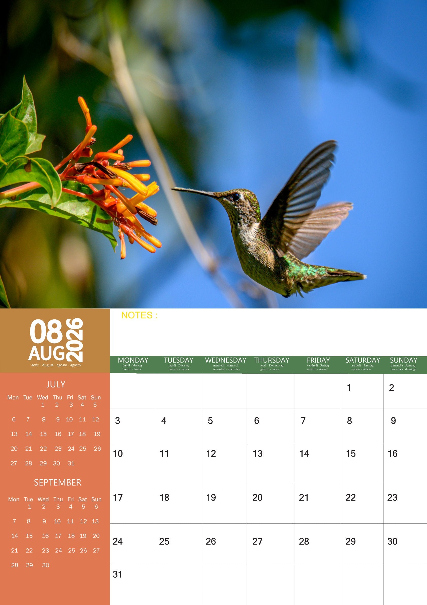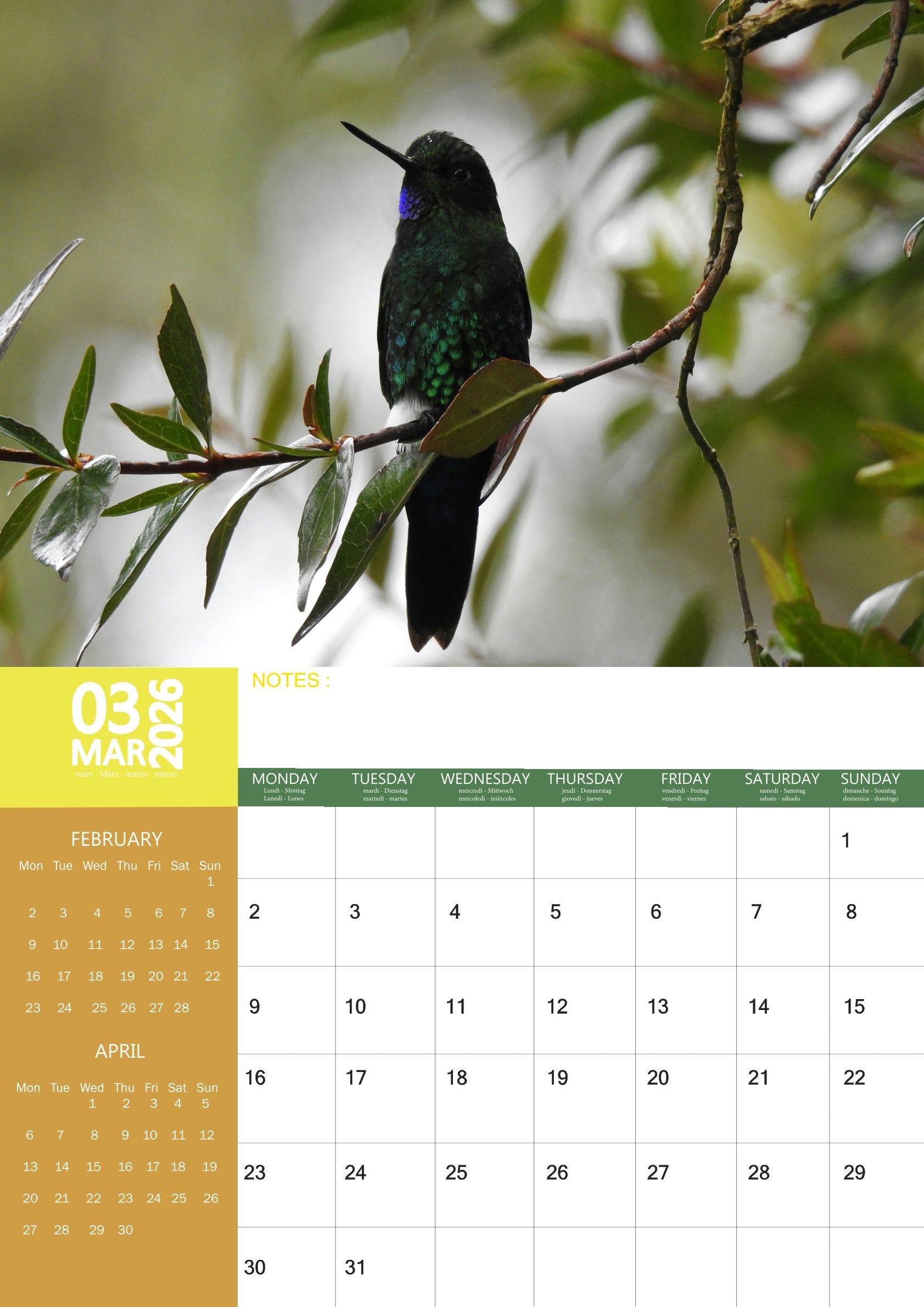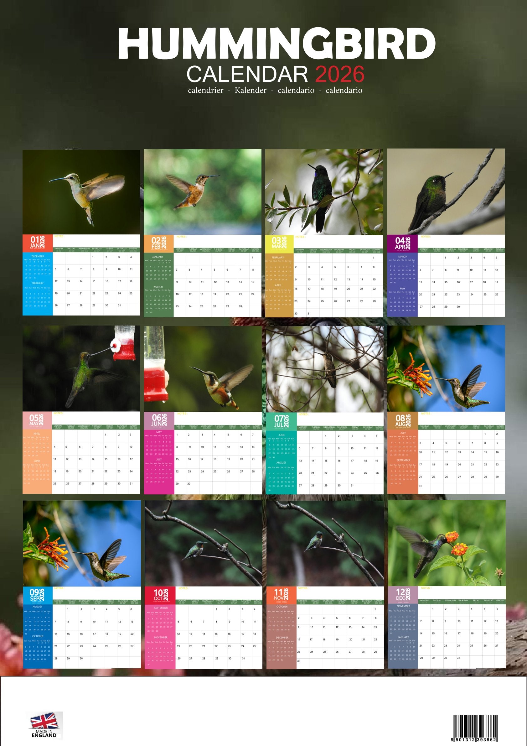 The Hummingbird Calendar 2026 captures the magic of these fascinating little birds that symbolise joy, energy, and resilience. Perfect as a personal treat or a thoughtful gift, this calendar brings the beauty of hummingbirds into your daily life, brightening each month with colour and movement.