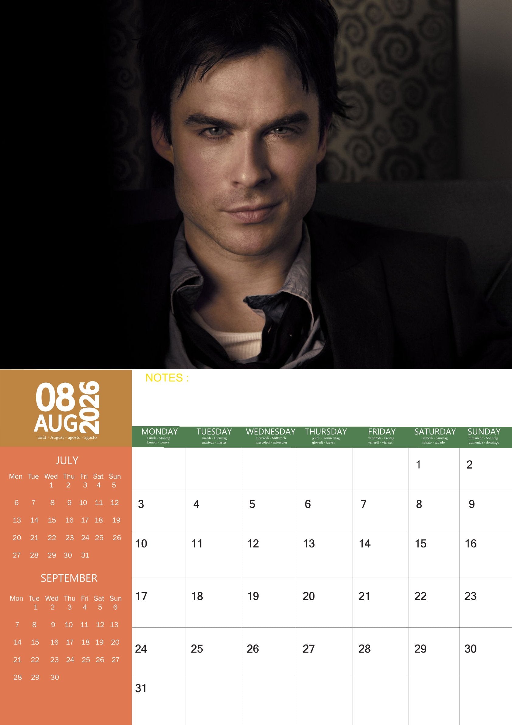 The Ian Somerhalder Calendar 2026 is more than a way to keep track of the year—it’s a celebration of one of TV and film’s most admired stars. With striking imagery and a practical design, it adds style, inspiration, and a touch of Hollywood glamour to your daily routine.