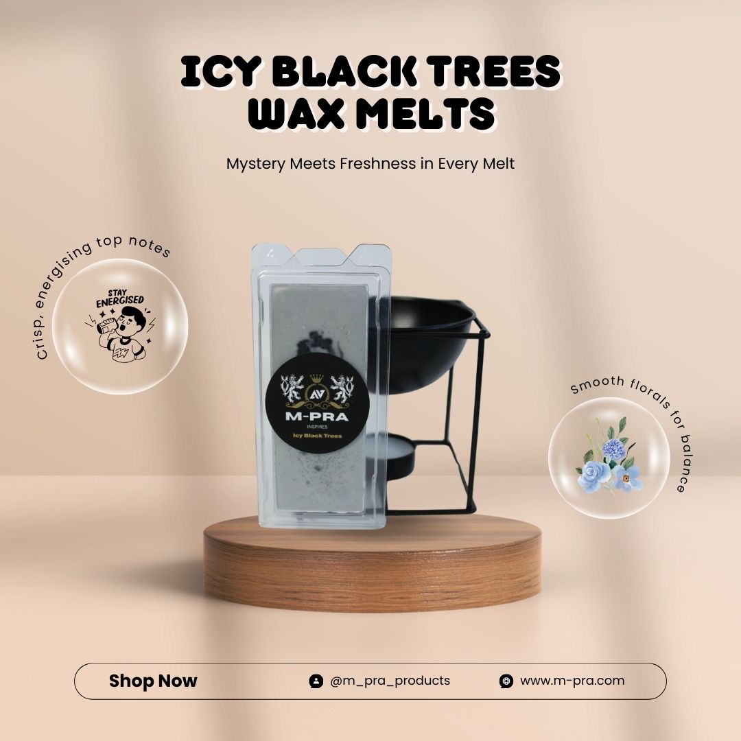 Description of our Hand-Made "Icy Black Trees" Scented Wax Melts: