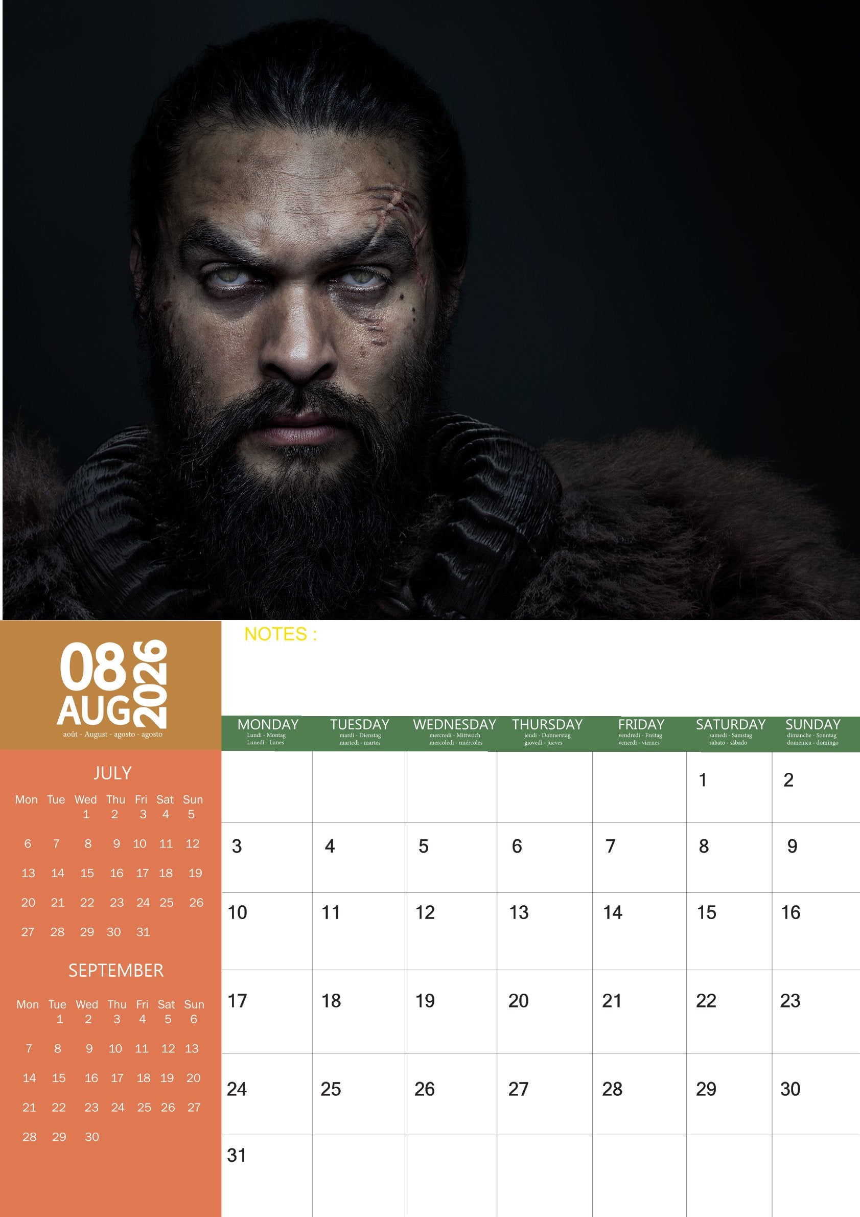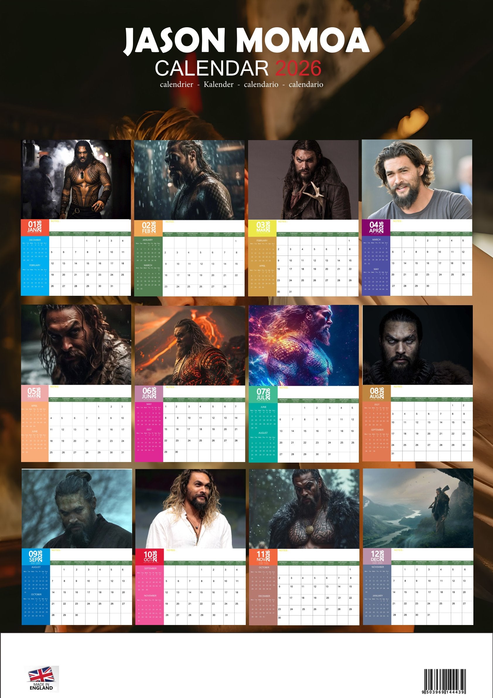 The Jason Momoa Calendar 2026 is more than a way to stay organised—it’s a year-long celebration of one of Hollywood’s most dynamic stars. With bold photography and a practical layout, it adds energy, inspiration, and charisma to your everyday life.