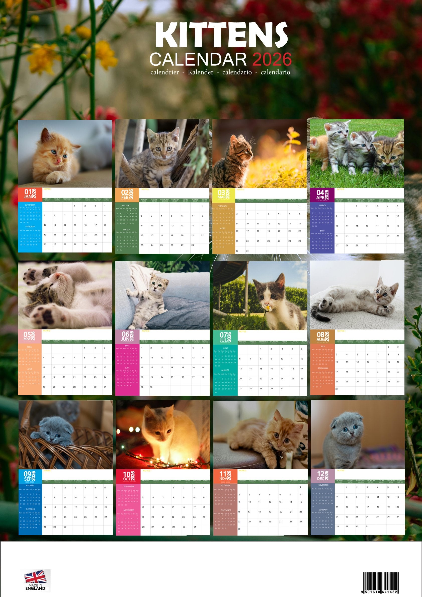 Bring cuteness and joy into your year with the Kittens Calendar 2026. Featuring 12 irresistible images of playful, curious, and cuddly kittens, this calendar captures their sweetest moments as they explore the world around them. Each month is filled with charm and furry delight.