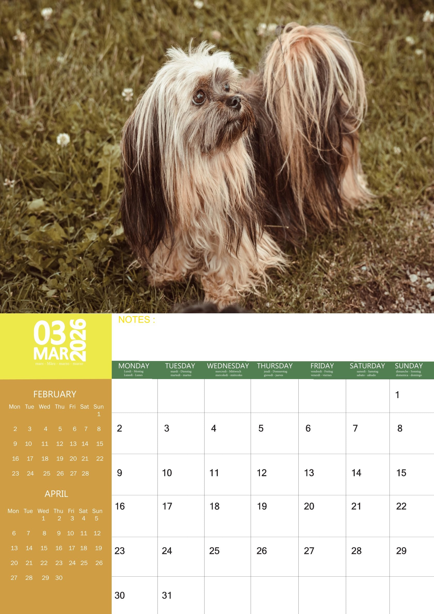 The Lhasa Apso Calendar 2026 is more than just a calendar—it’s a year-long celebration of one of the most charming and devoted breeds. With beautiful photography and a practical layout, it brings the Lhasa Apso’s playful spirit, loyalty, and affectionate nature into your home all year long.