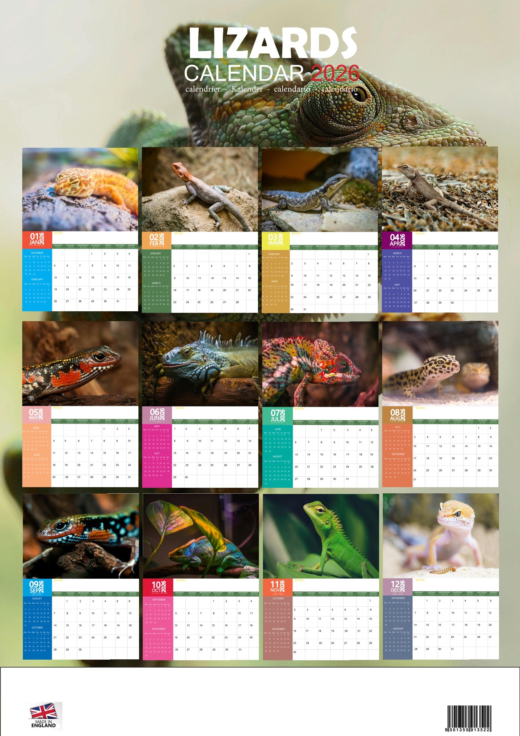 Step into the fascinating world of reptiles with the Lizard Calendar 2026. Featuring 12 detailed and colorful images of lizards from around the globe, this calendar highlights their unique patterns, vibrant colors, and intriguing behaviors. Perfect for reptile enthusiasts, it brings a splash of exotic charm to every month of the year.