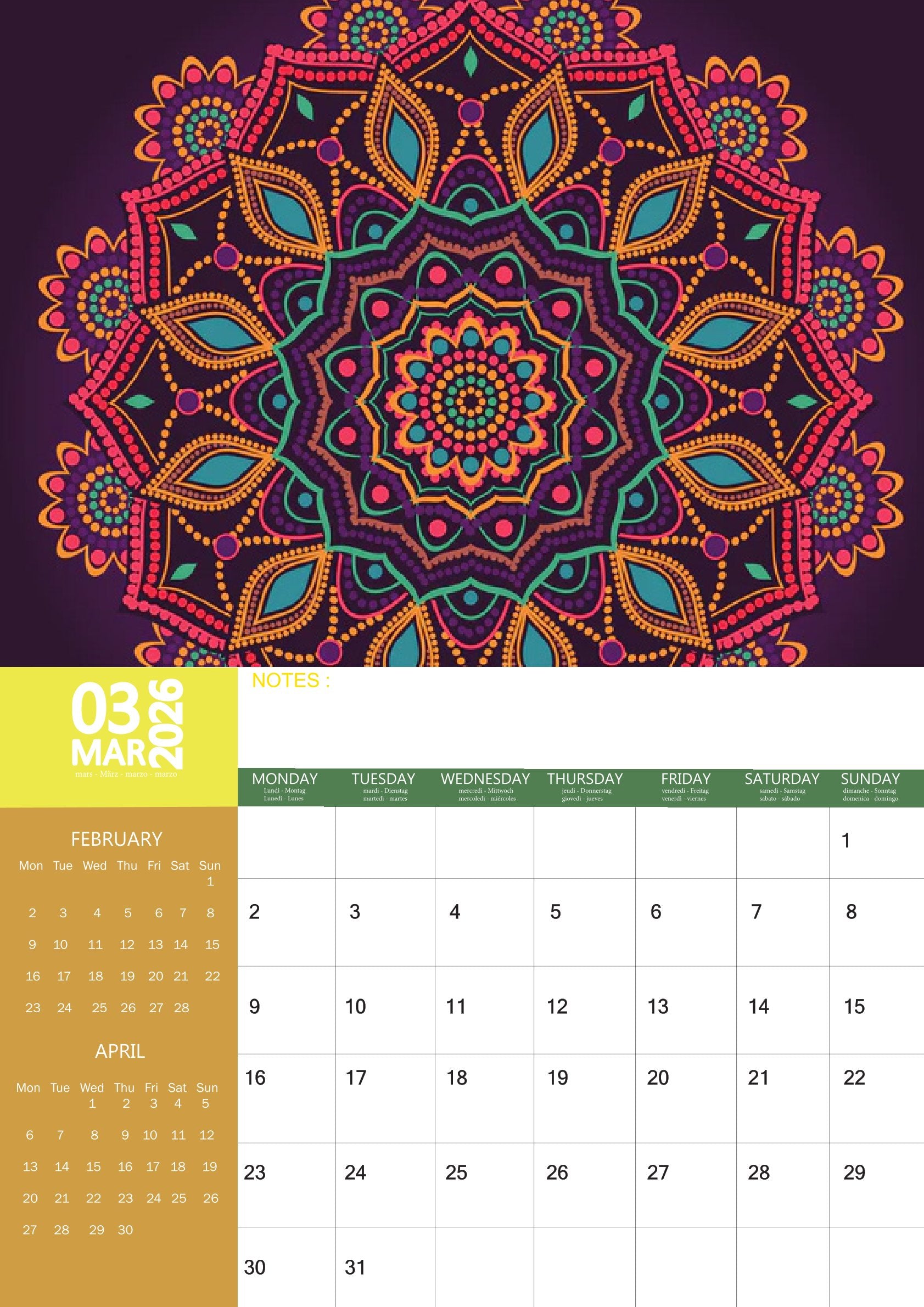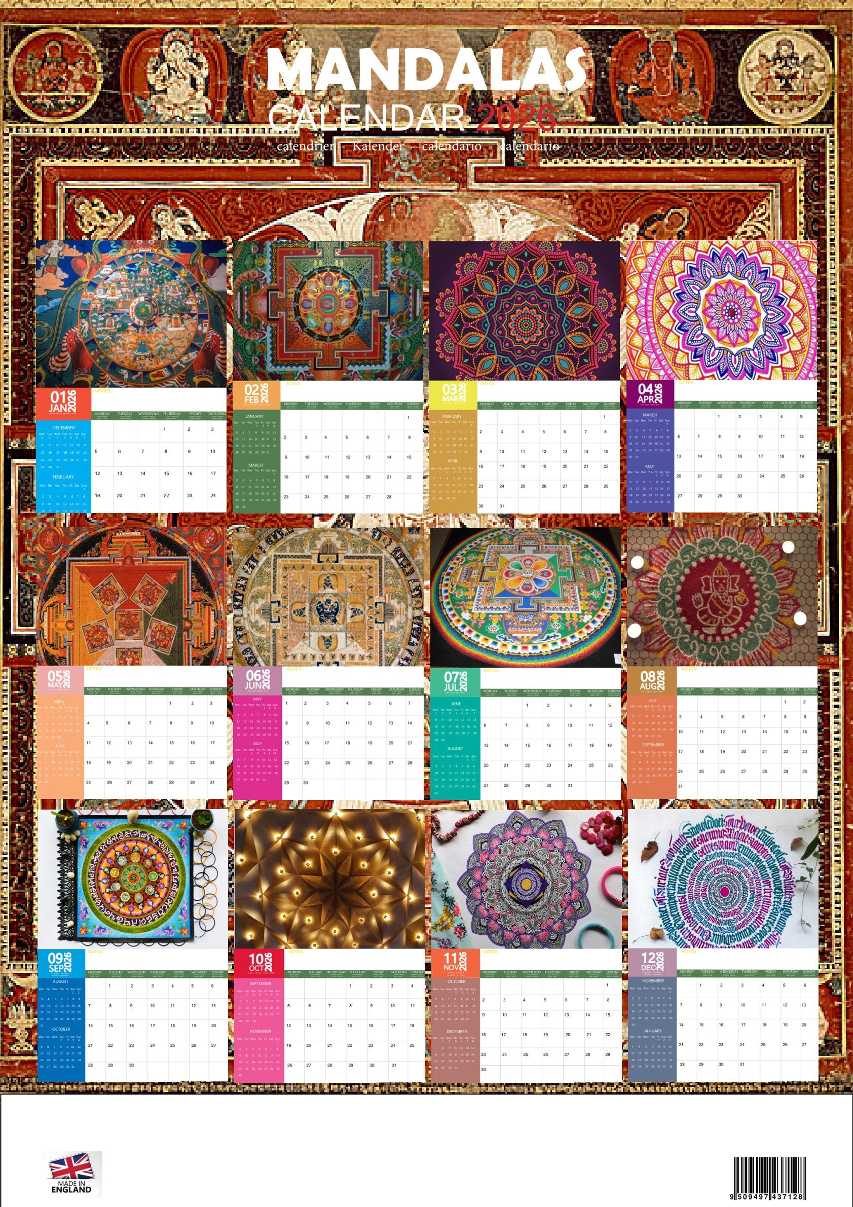 Bring balance, harmony, and artistic beauty into your year with the Mandalas Calendar 2026. Featuring 12 intricate and colourful mandala designs, this calendar is a celebration of mindfulness, creativity, and spiritual symbolism. Each month presents a new pattern that inspires calm and reflection while brightening up your wall.