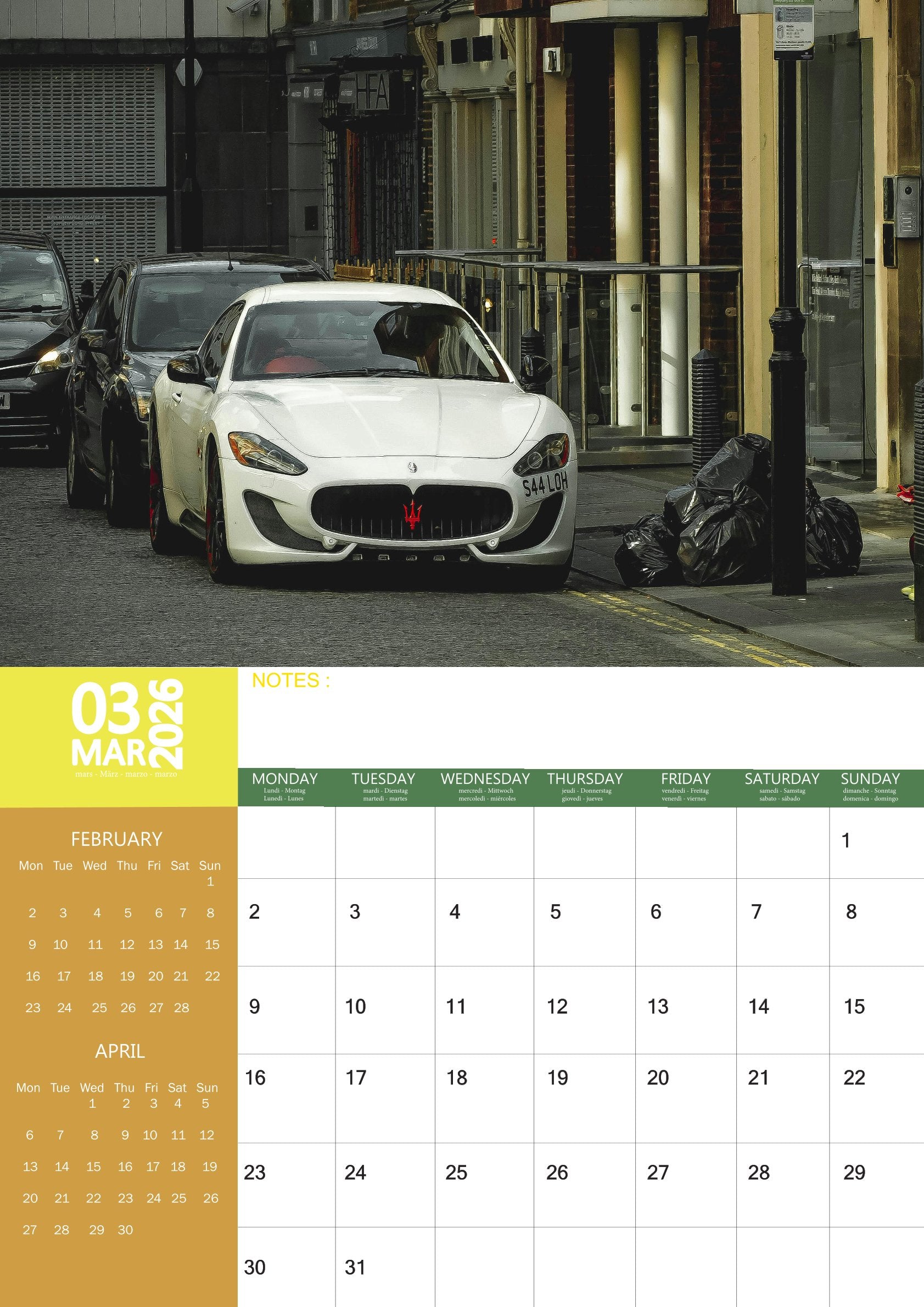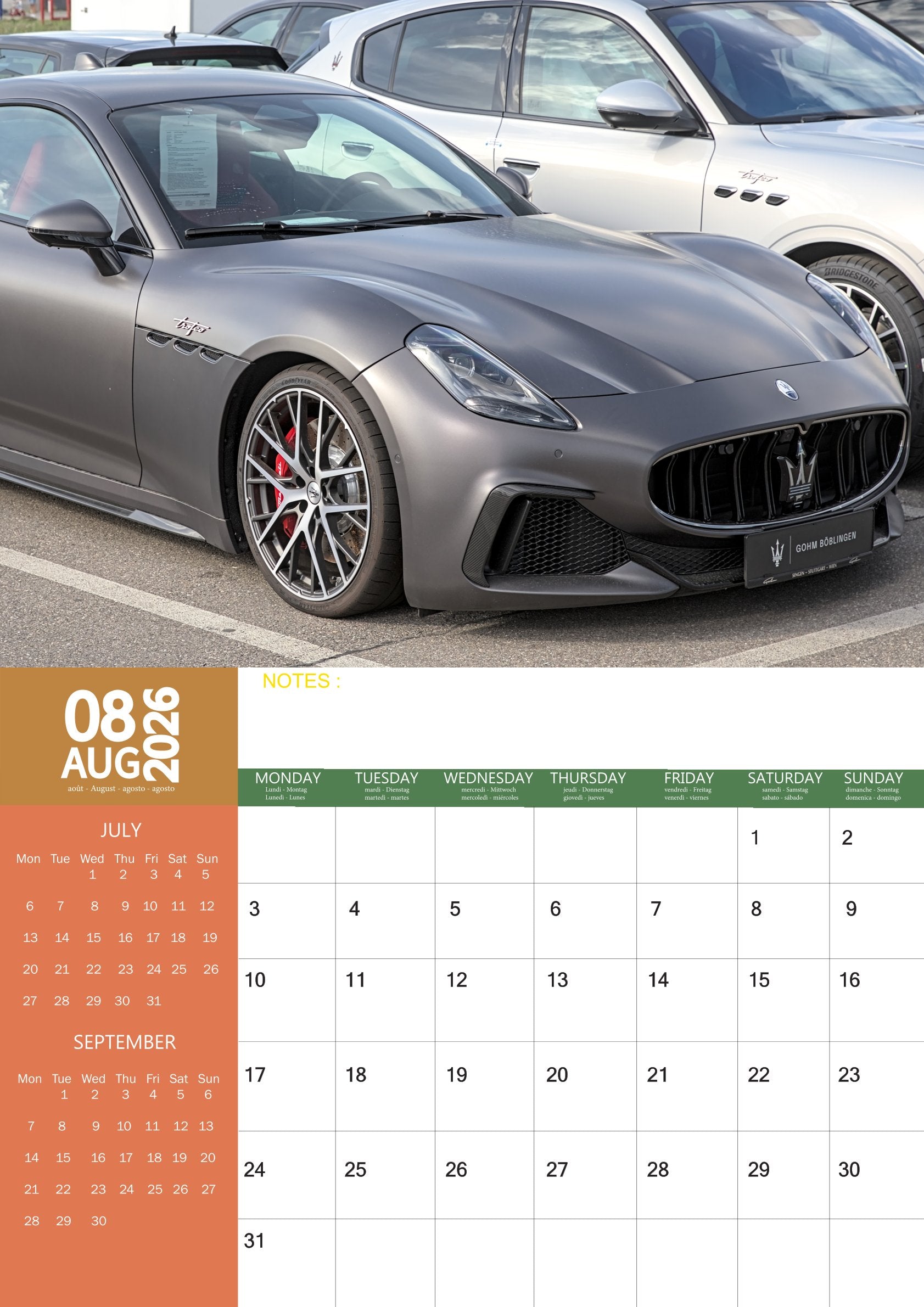 The Maserati Calendar 2026 is more than a planner — it’s a year-long celebration of style, speed, and Italian automotive excellence. Each month delivers captivating imagery that embodies the prestige and performance of Maserati.
