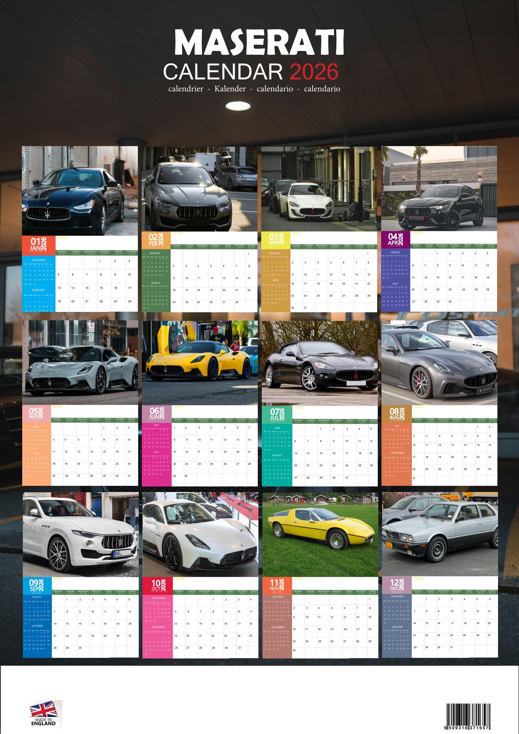 Experience Italian elegance, performance, and luxury with the Maserati Calendar 2026. Featuring 12 stunning images of Maserati’s iconic vehicles, this calendar celebrates style, speed, and automotive craftsmanship. Each month brings the sophistication and allure of Maserati to your walls.
