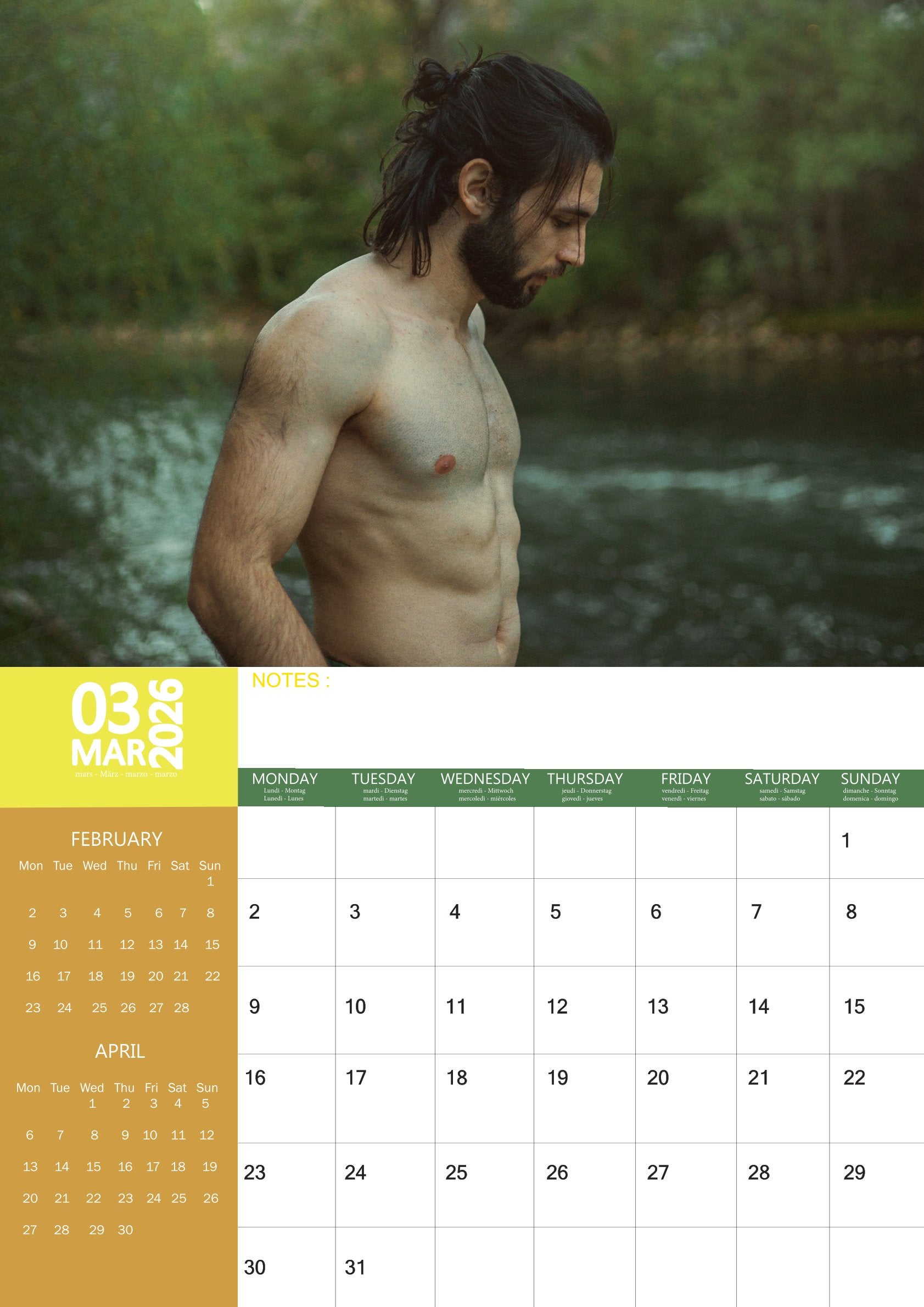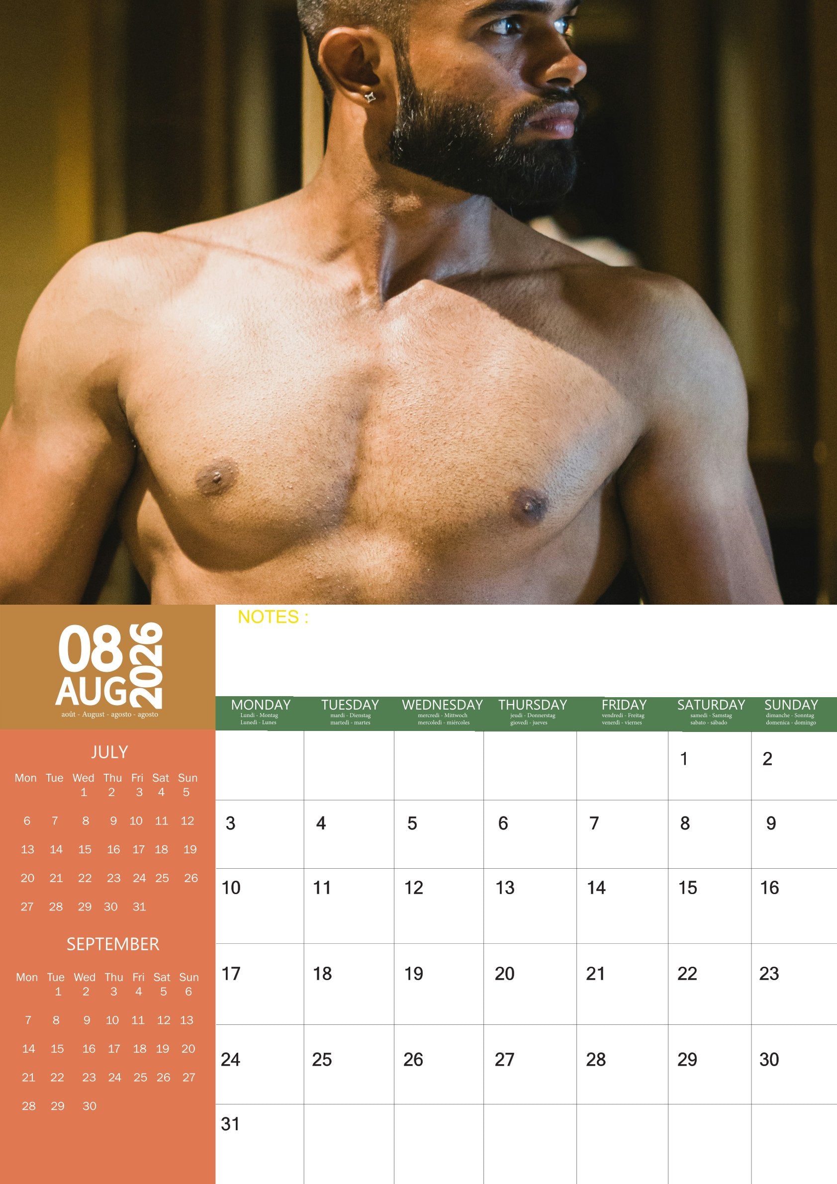 The Men with Beard Calendar 2026 is more than just a practical planner — it’s a celebration of distinctive style and masculinity. Each month features a captivating image that combines charm, confidence, and everyday inspiration.
