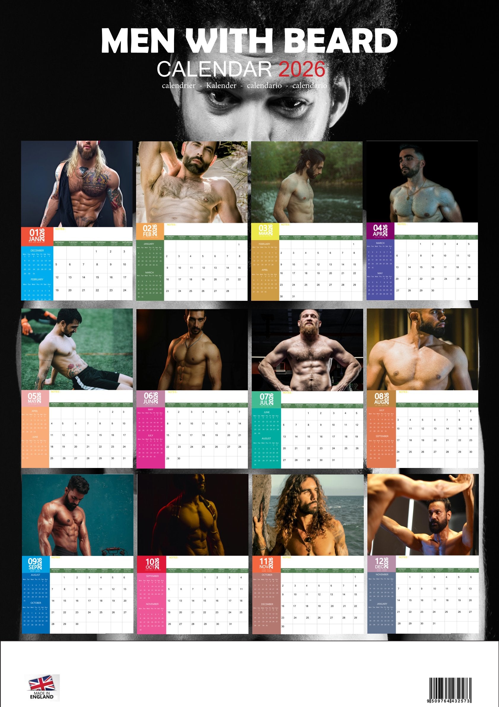 Celebrate rugged charm and masculine style with the Men with Beard Calendar 2026. Featuring 12 striking portraits of bearded men, this calendar highlights strength, confidence, and distinctive character. Each month presents a bold and stylish image that adds personality and flair to any wall.