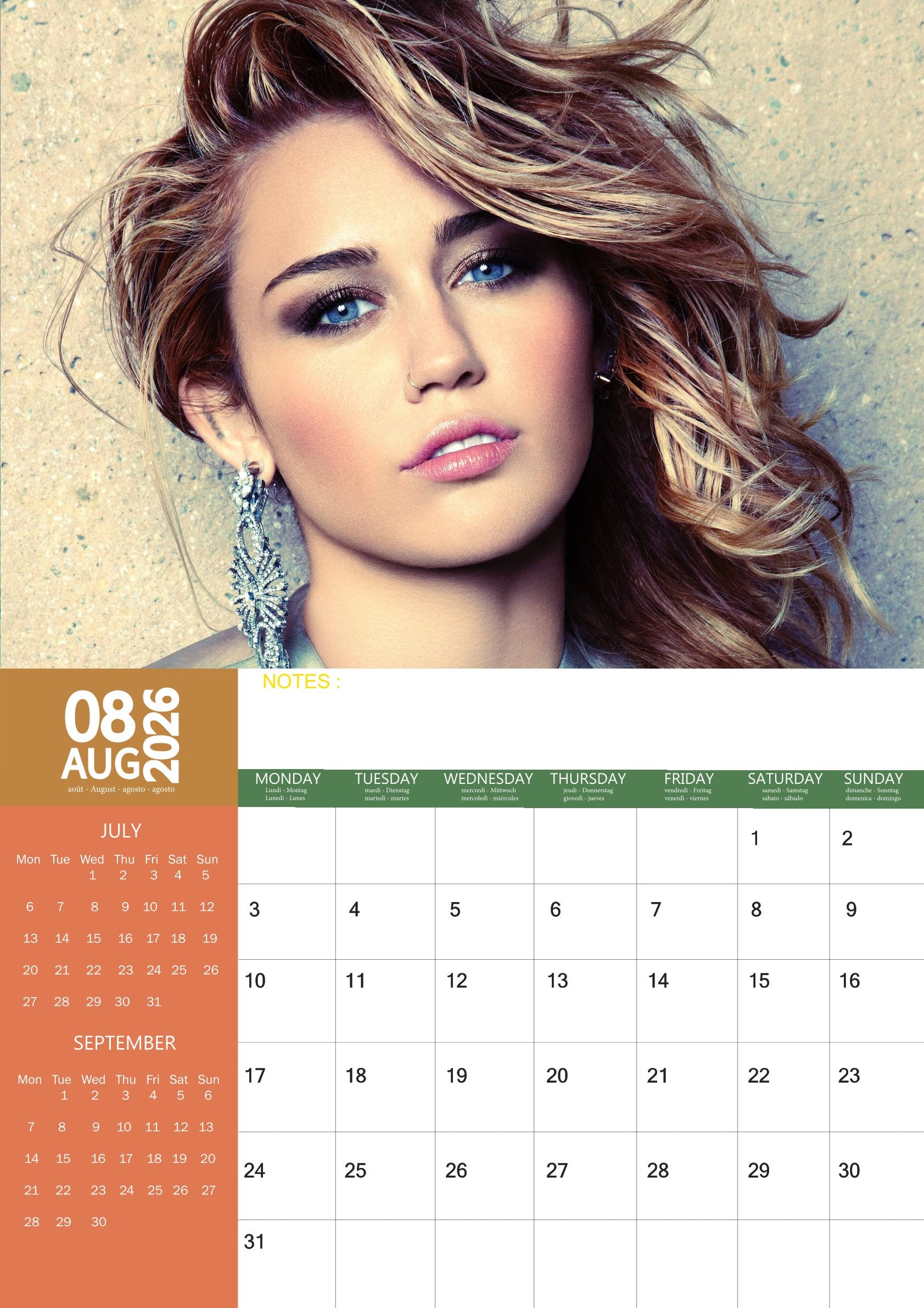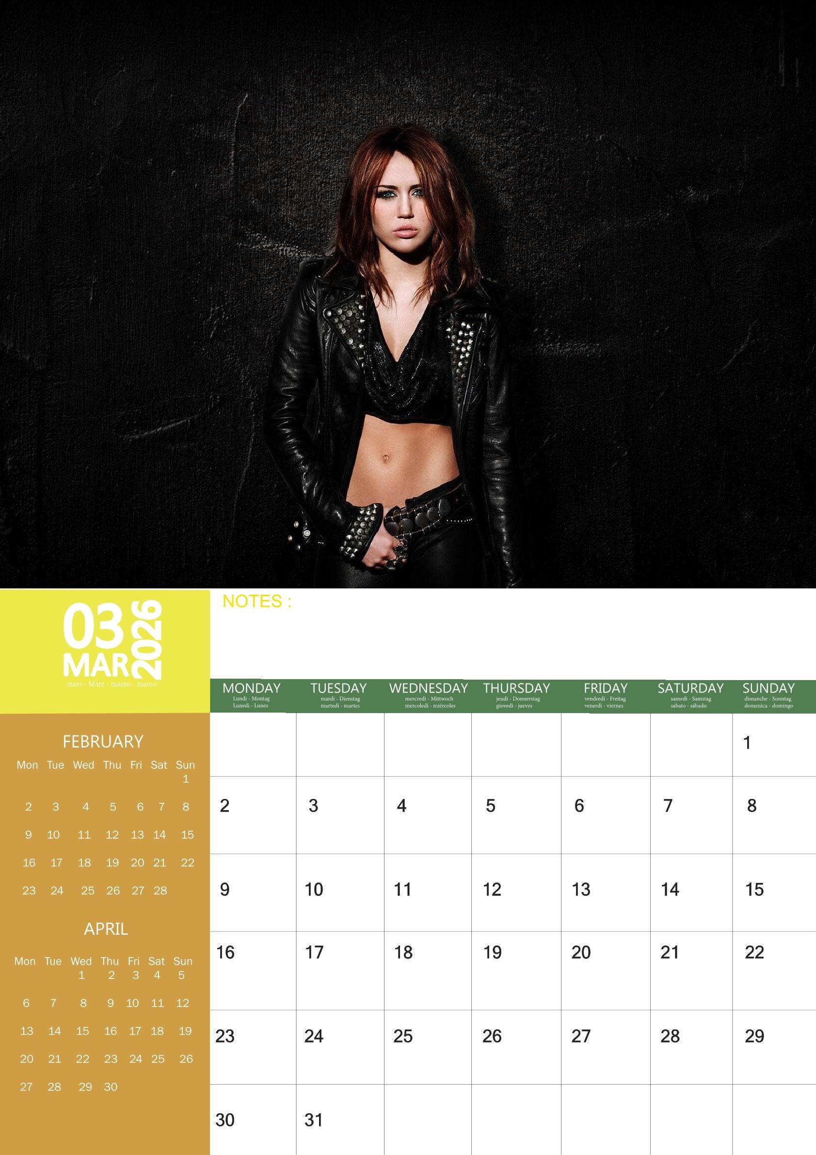 The Miley Cyrus Calendar 2026 isn’t just a way to organize your year—it’s a celebration of an artist who redefines herself with every era. A perfect keepsake for fans who admire her voice, creativity, and bold spirit.