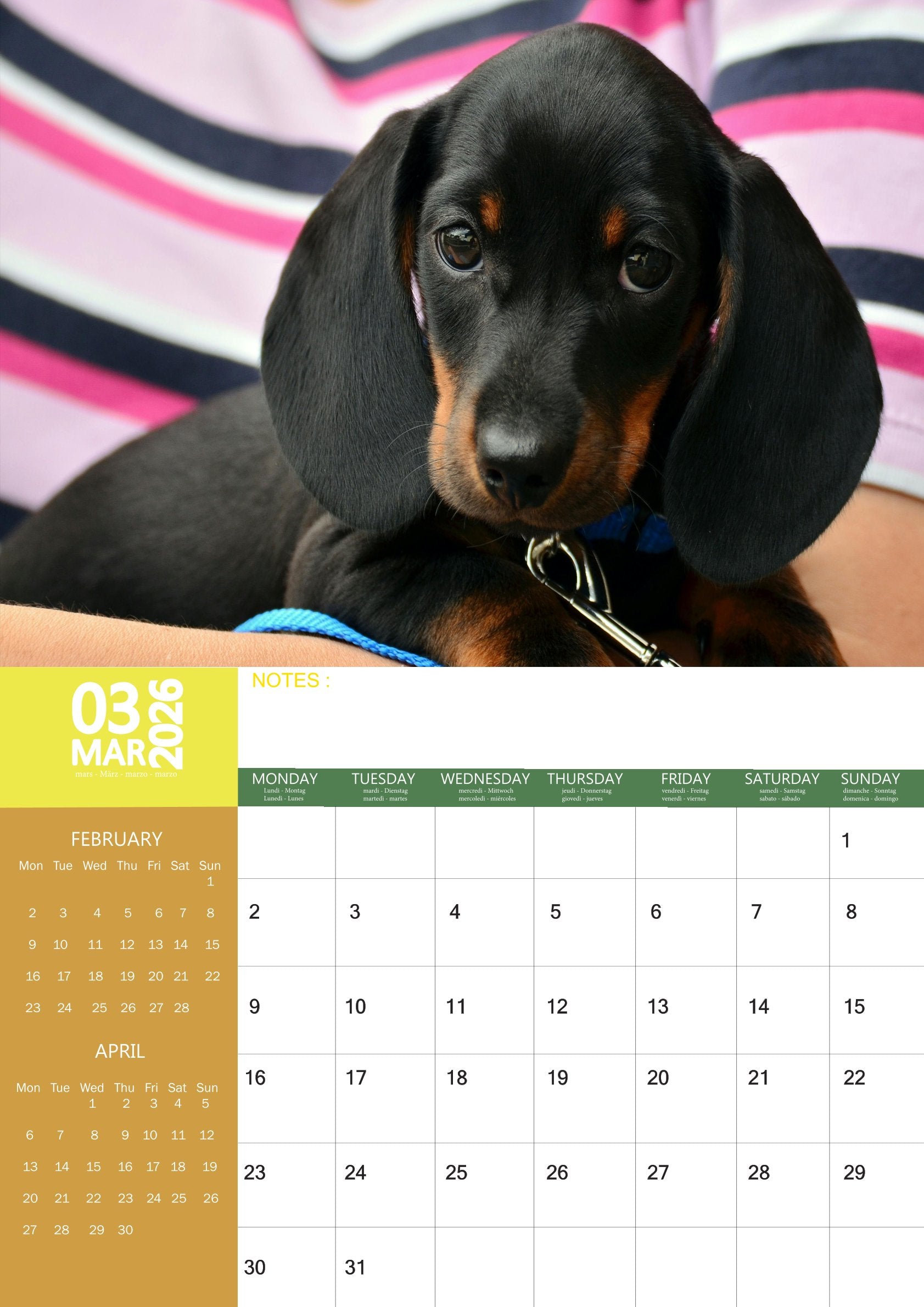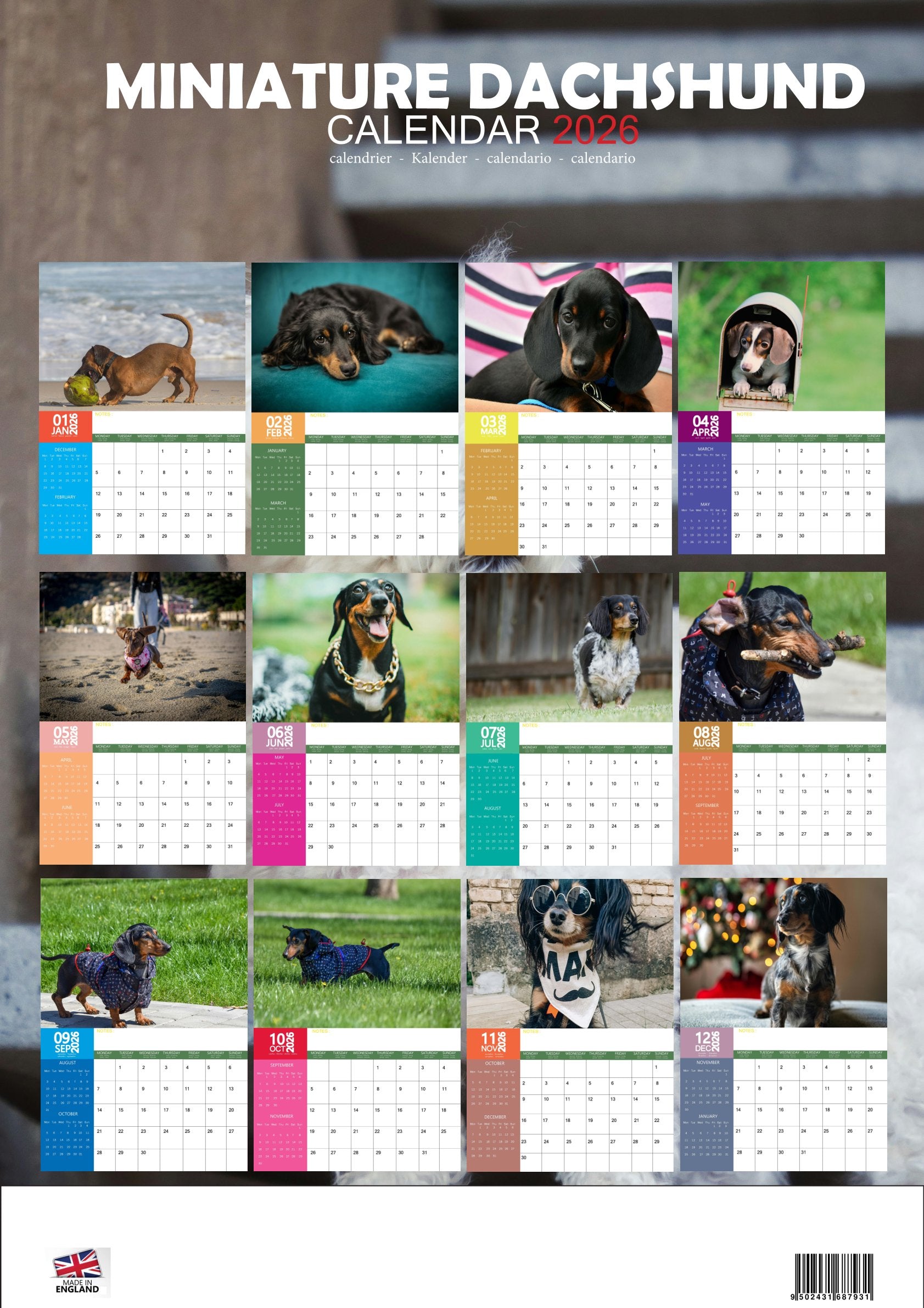 Miniature Dachshund Dog Calendar 2026 – M-PRA Range
