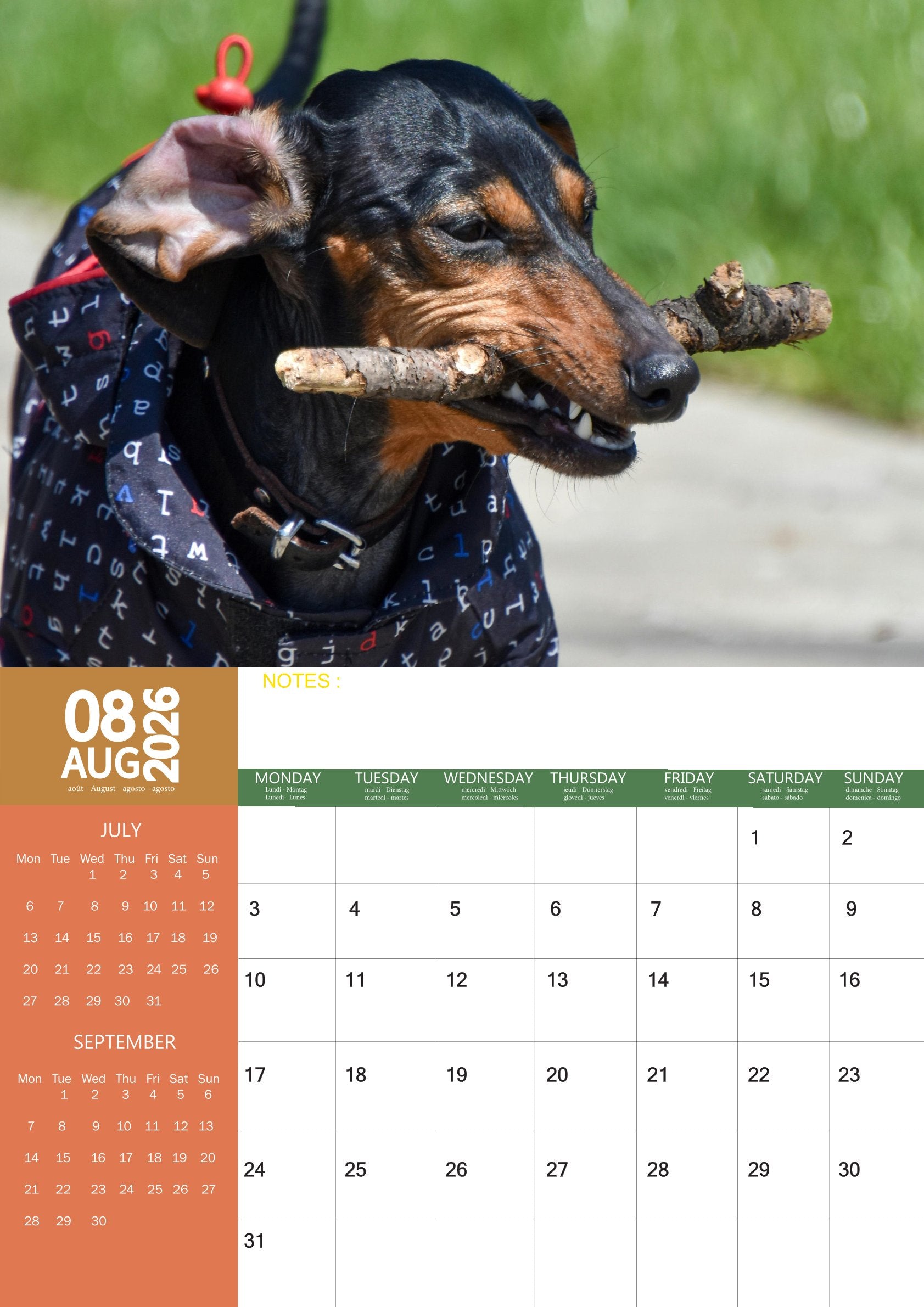 The Miniature Dachshund Calendar 2026 is more than just a calendar—it’s a year-long tribute to one of the most loved small dog breeds. With adorable photography and a practical layout, it brings the Dachshund’s playful charm and affectionate spirit into your home all year round.