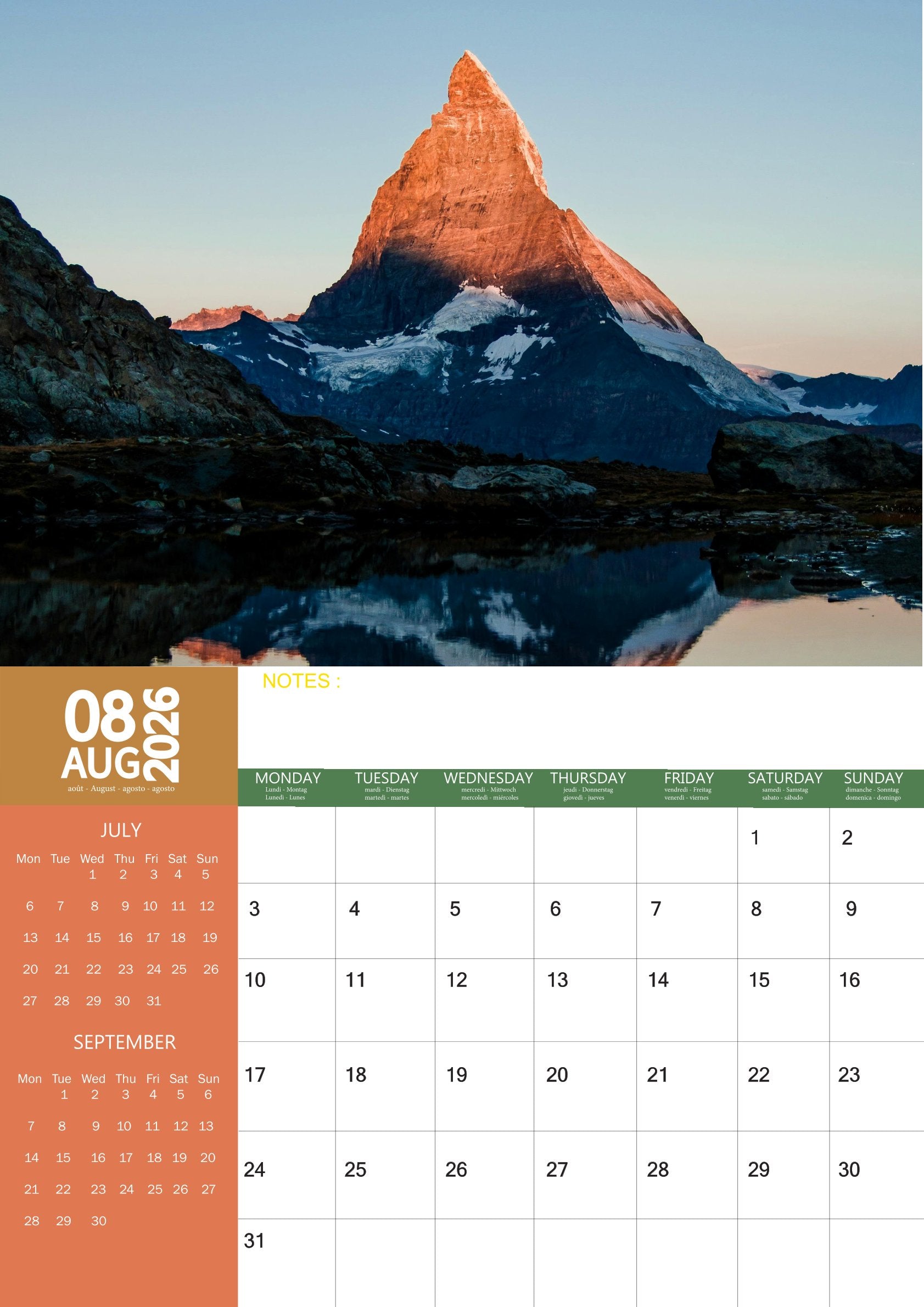 The Mountains Calendar 2026 is more than just a way to organize your year—it’s a daily reminder of the world’s most awe-inspiring landscapes. With its powerful imagery and practical design, this calendar makes a thoughtful gift or a refreshing addition to your own home or office.